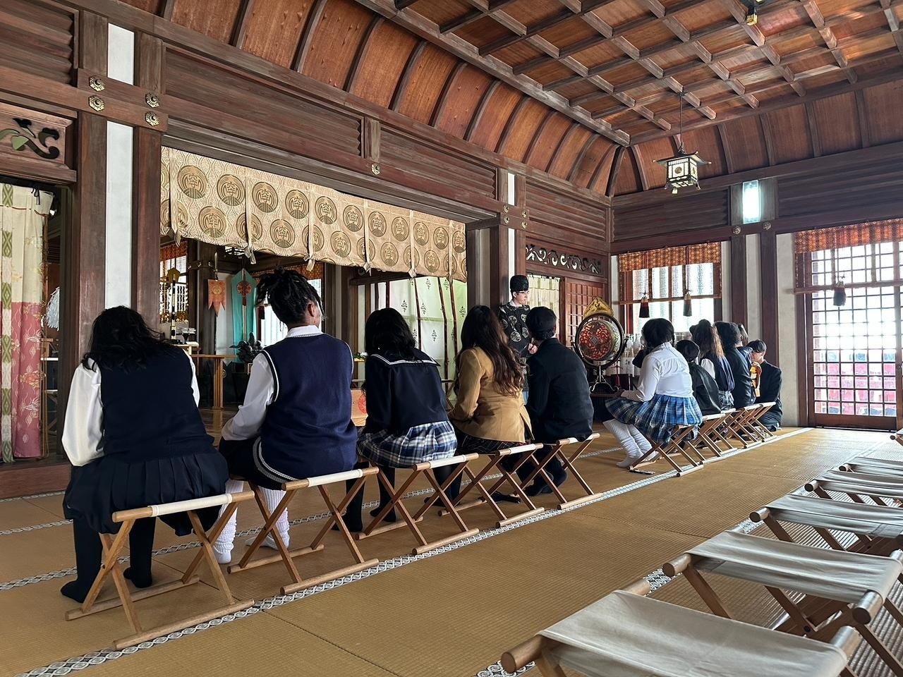 本プログラムでは、参加者が制服姿で参拝し、神職による本格的なご祈祷を受けます。