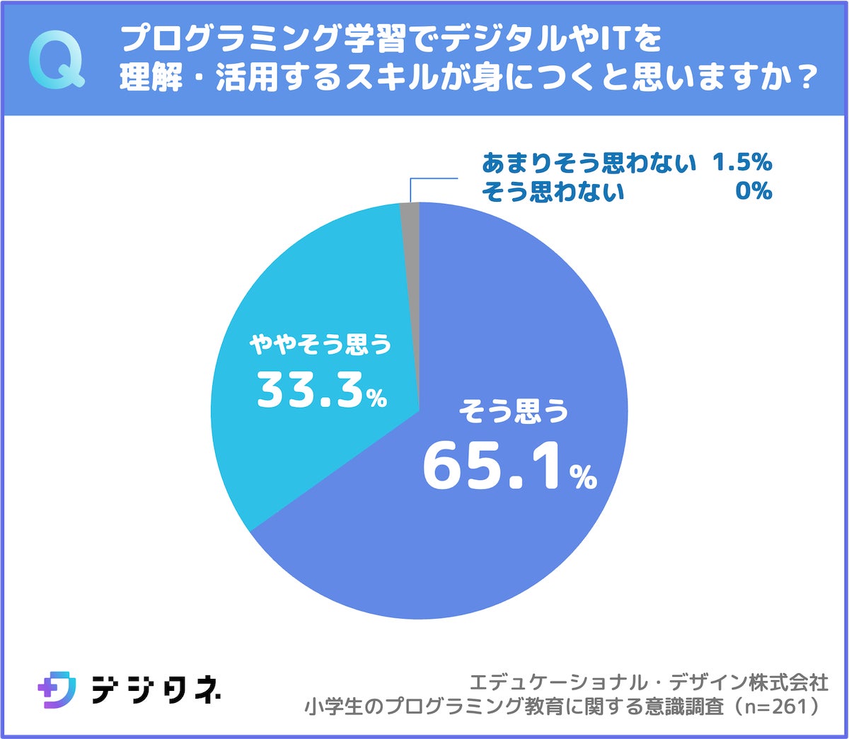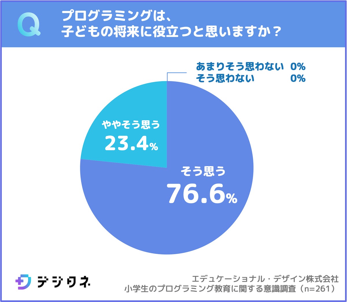75%以上の保護者が「プログラミングは子どもの将来に役立つ」と回答デジタネ、小学生のプログラミング教育に関する意識調査を実施