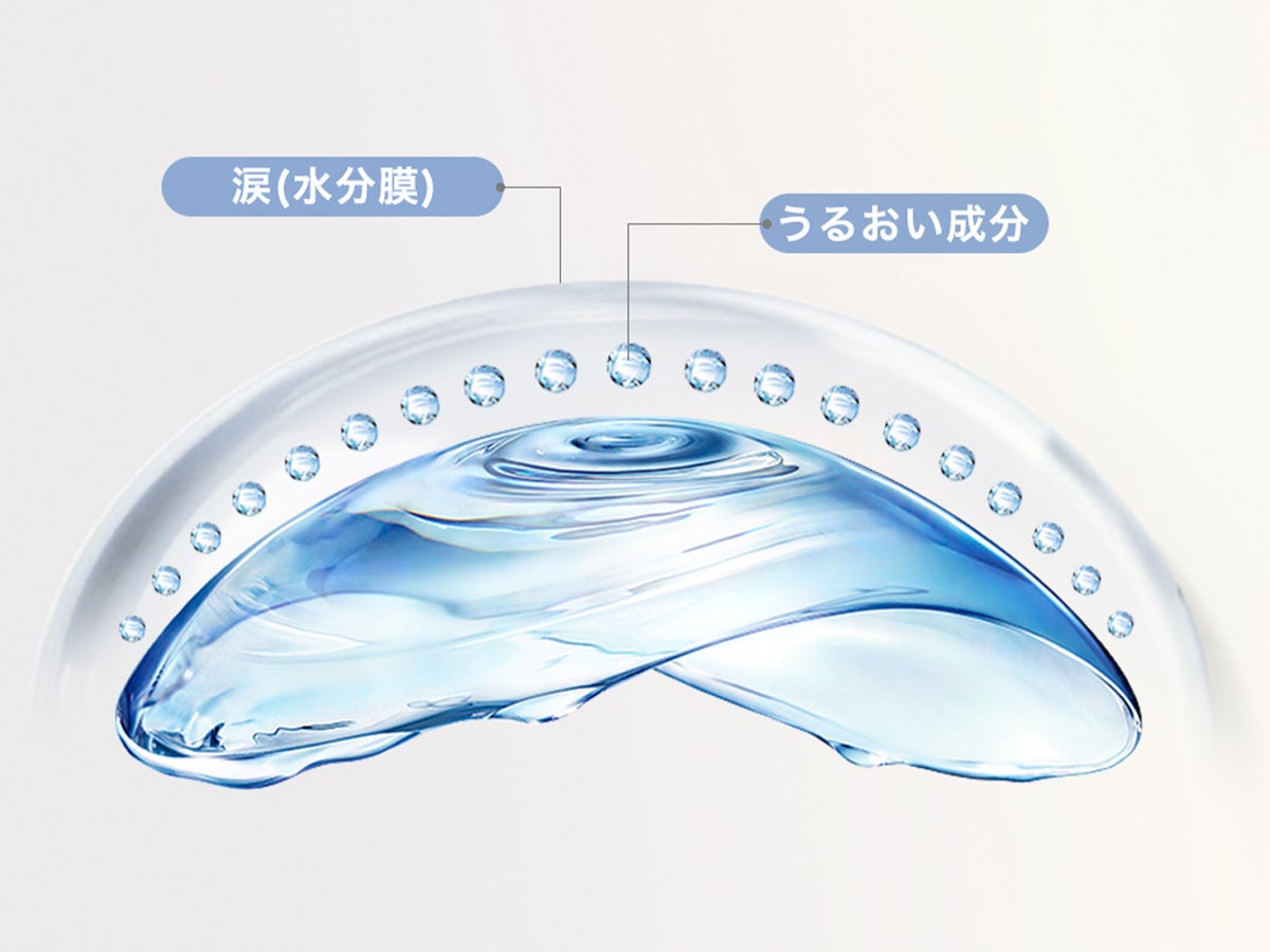 親水性・保水性に優れていることから涙の蒸発を防ぎ、乾燥等によるゴロゴロした目の違和感を緩和します。レンズの快適な着け心地を維持することができます。