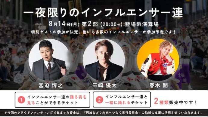 【2023阿波おどり】には特別ゲストとして有名インフルエンサーの方々が参加いたします。