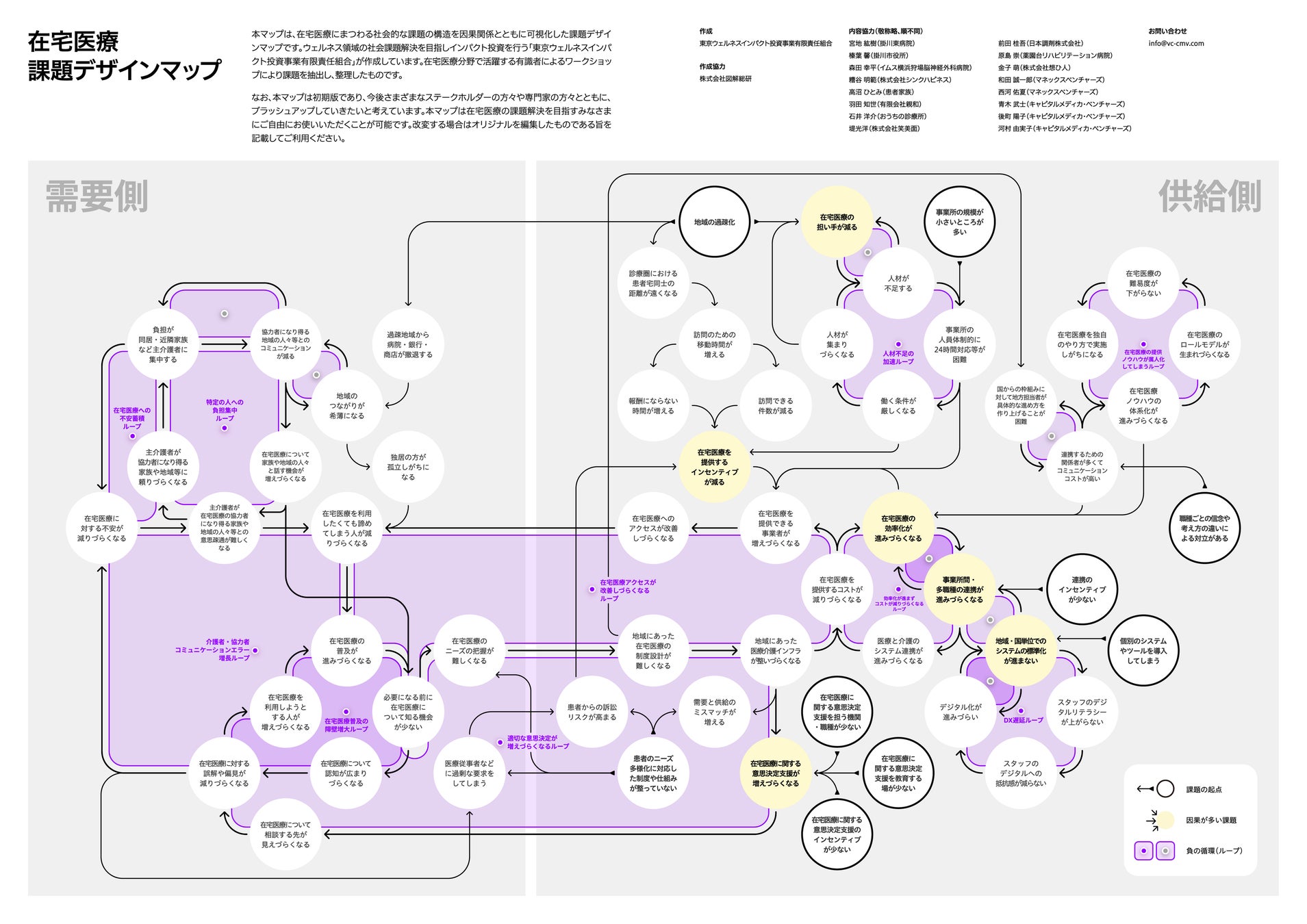 本マップは、在宅医療分野で活躍する有識者によるワークショップにより課題を抽出・整理したものです。