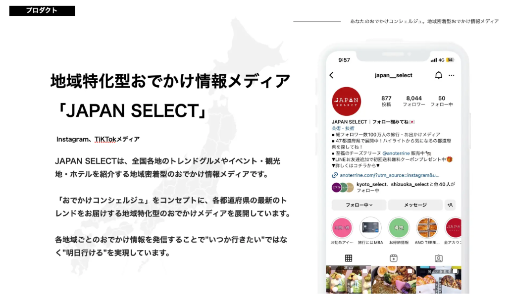 事業内容:地域特化型おでかけ情報メディア「JAPAN SELECT」の運営