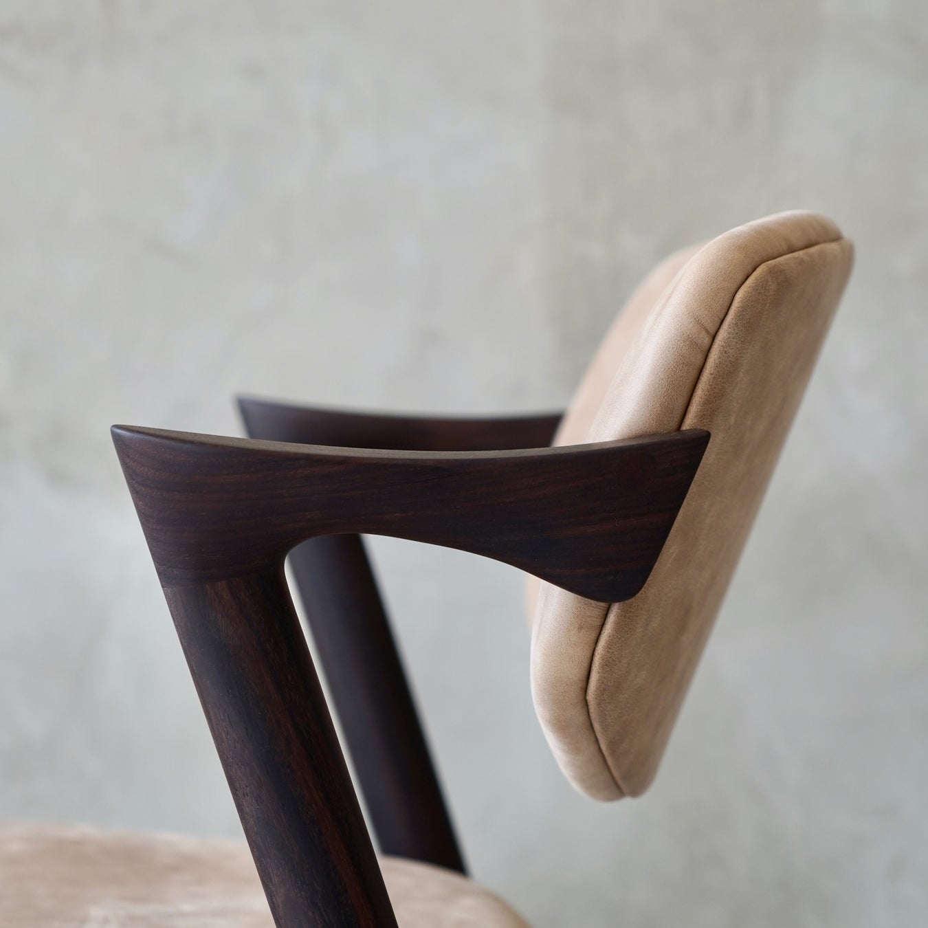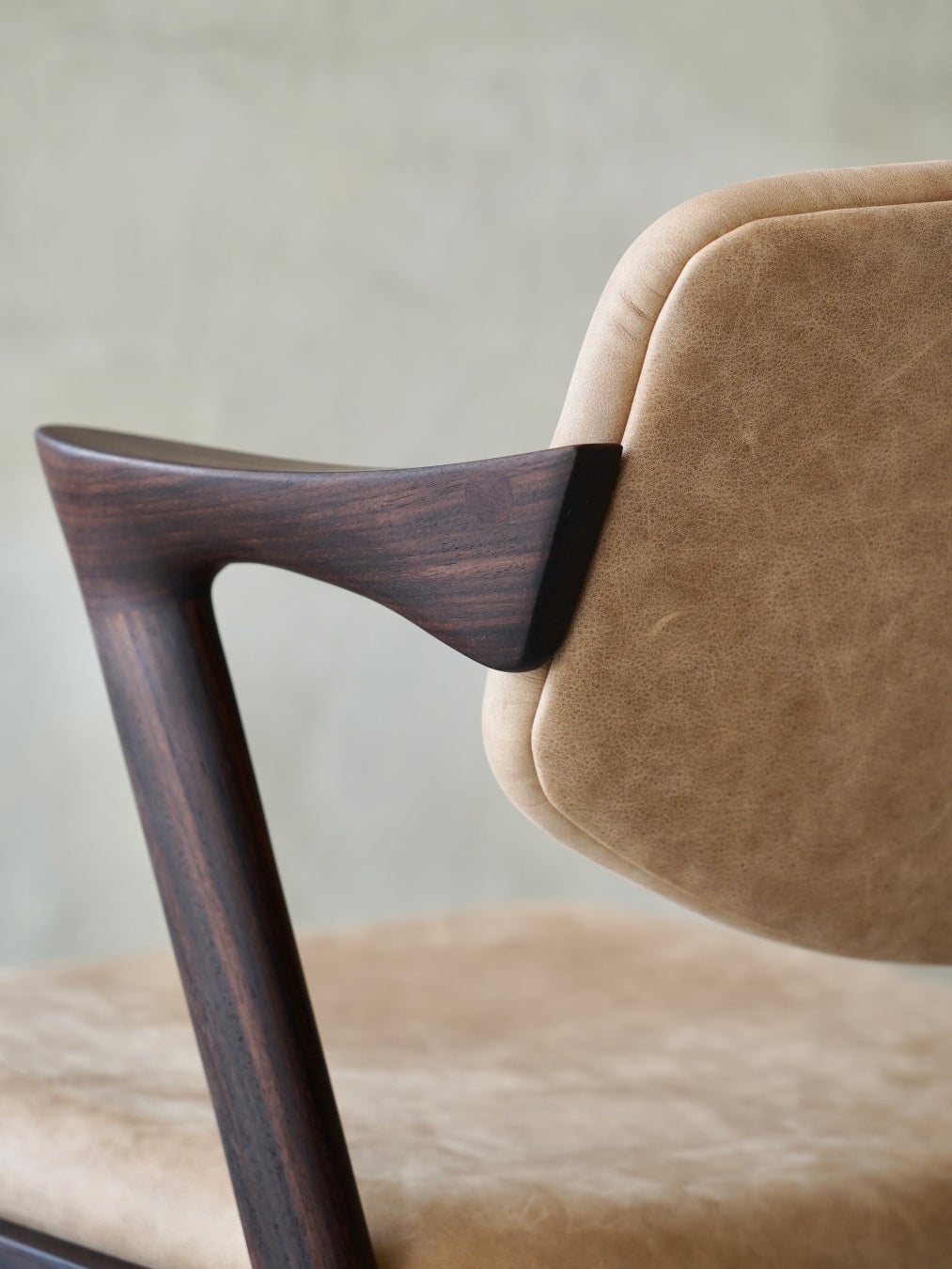 この別注モデルは弊社が運営するインテリアショップ「SEVEN STYLE」の開店15周年を記念した特別仕様として宮崎椅子製作所へ依頼したことで実現しました。別注モデルは、宮崎椅子製作所の通常ラインナップには無い樹種である「ローズウッド材」「チーク材」「ウェンジ材」を採用し、張地は宮崎椅子製作所の数ある中からSEVEN STYLEが厳選した張地を2種類のみご用意しています。