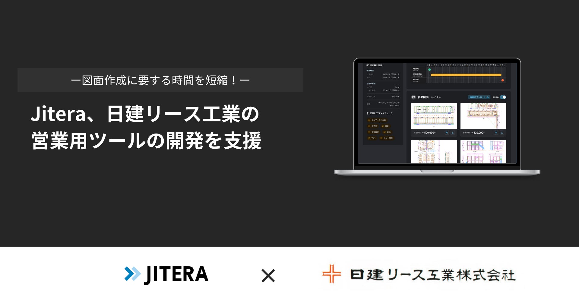 Jitera、日建リース工業の営業用ツールの開発を支援。図面作成に要する時間を短縮し、商談での提案力を向上