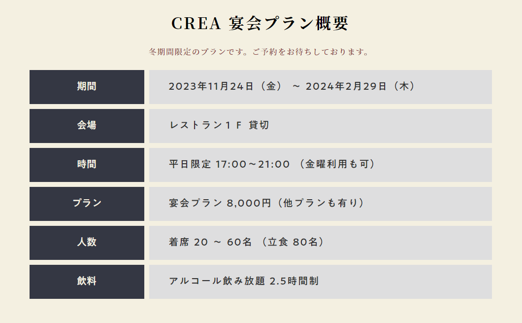 ・公式Instagram:https://www.instagram.com/crea_restaurant