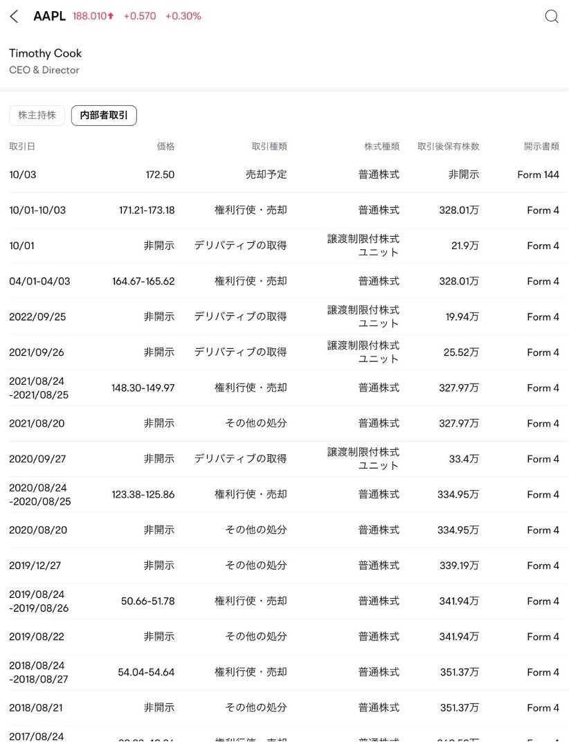 ※内部者情報は、SECに提出された報告書を基に提供されます。