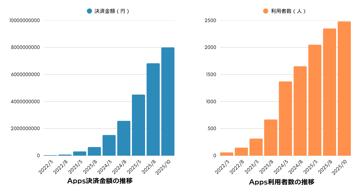 株式会社アップス(本社:大阪府/代表取締役:中井 聖、以下 アップス)は、デジタルコンテンツ向け決済SaaS『Apps』の累計流通総額が 2025年10月30日付で80億円に到達したことをお知らせします。