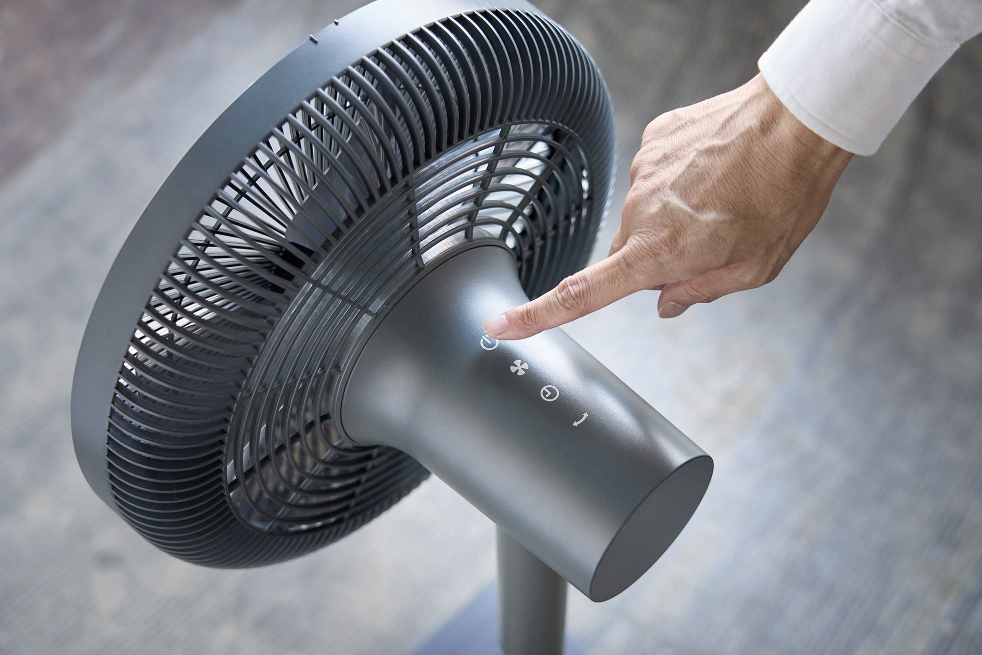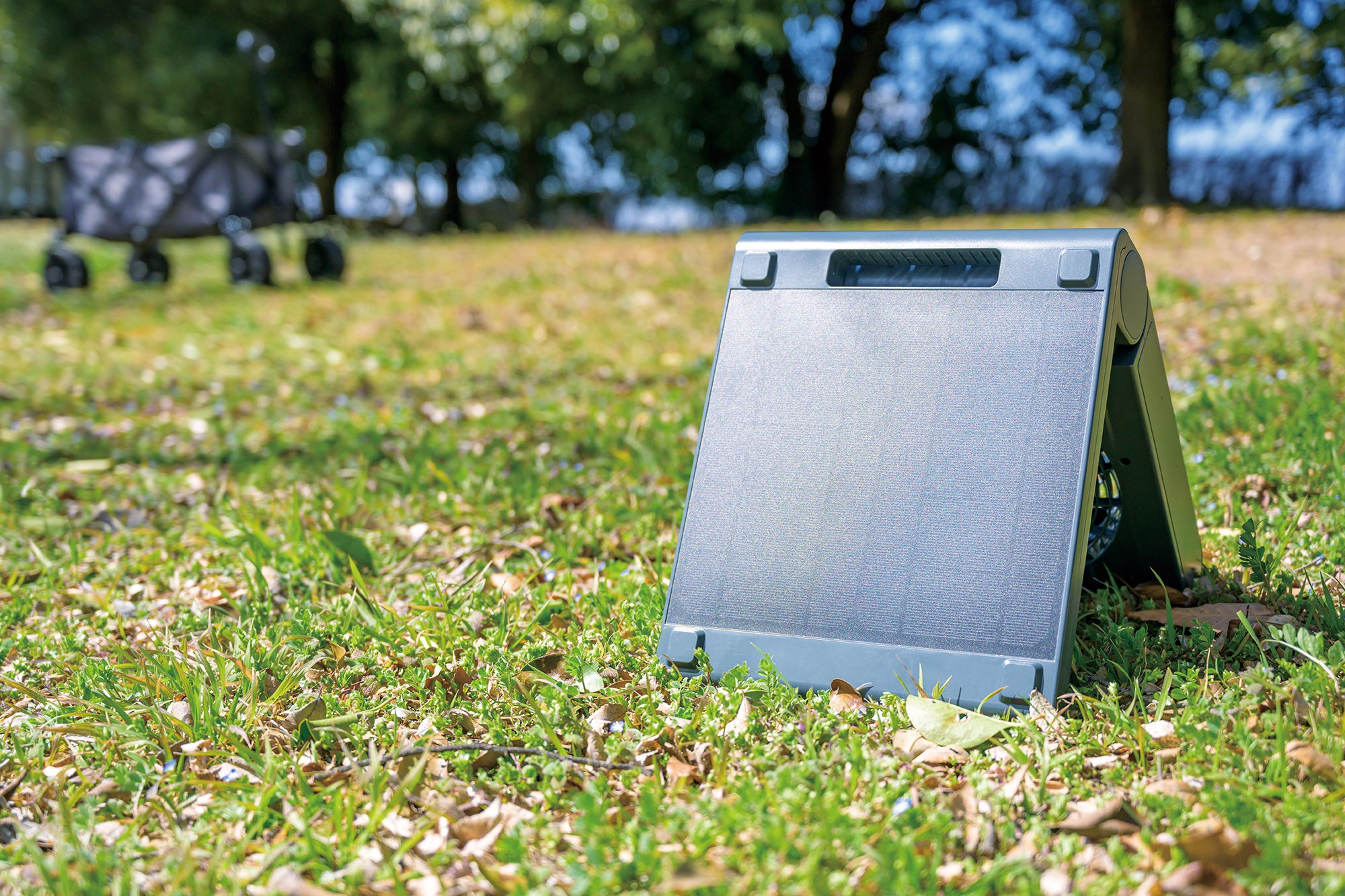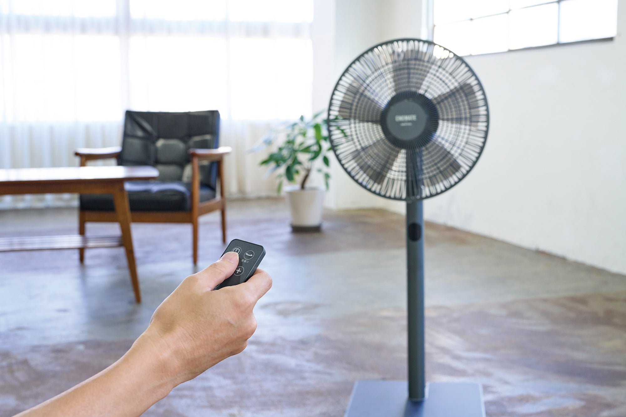 ソーラーパワーリビングファンは、台座に搭載されたソーラーパネルで自ら発電し、運転するコードレス扇風機です。