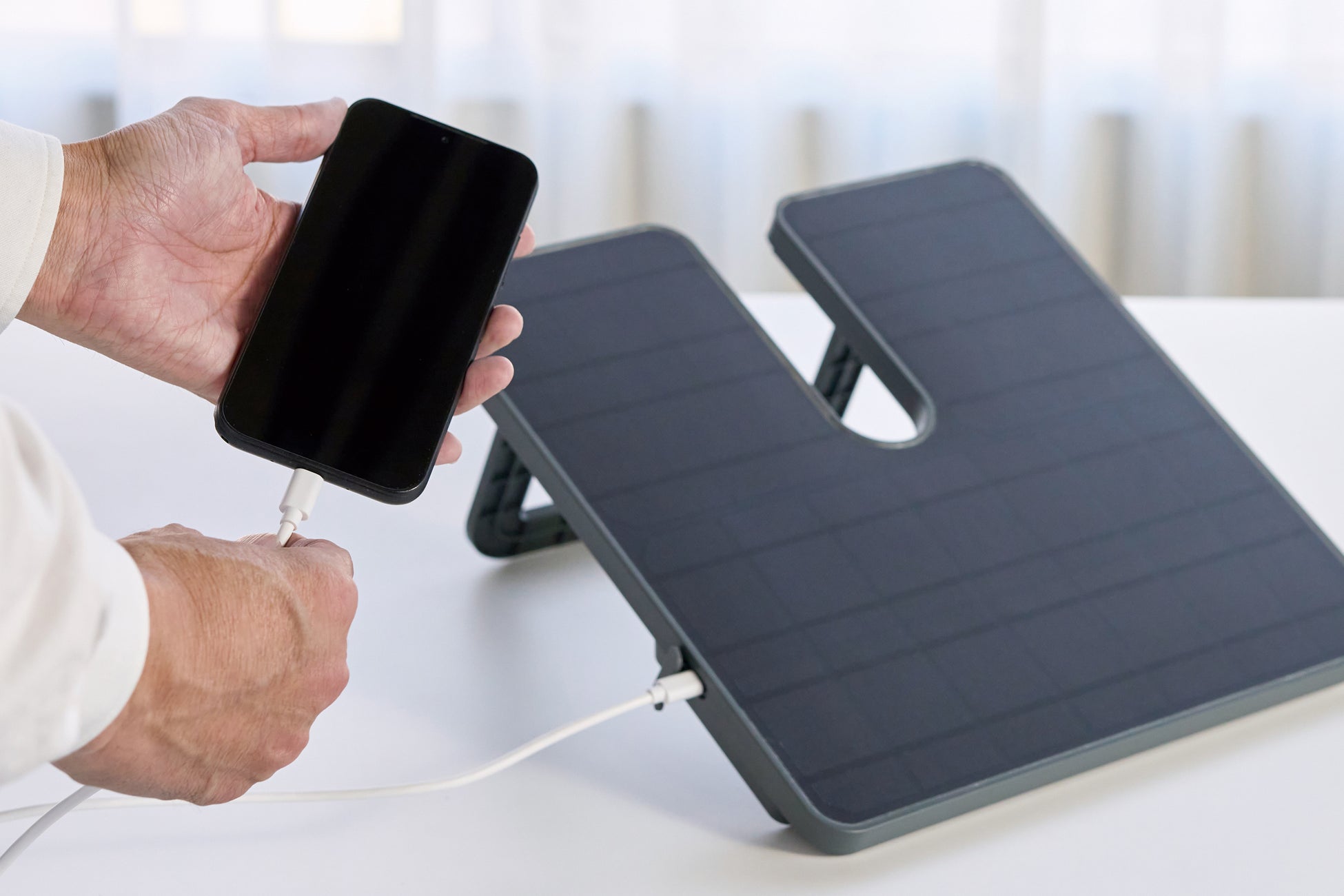 スマートフォンなどのデバイスに充電することもできるため、ソーラーパワーリビングファン同様、いざという時も活躍します。