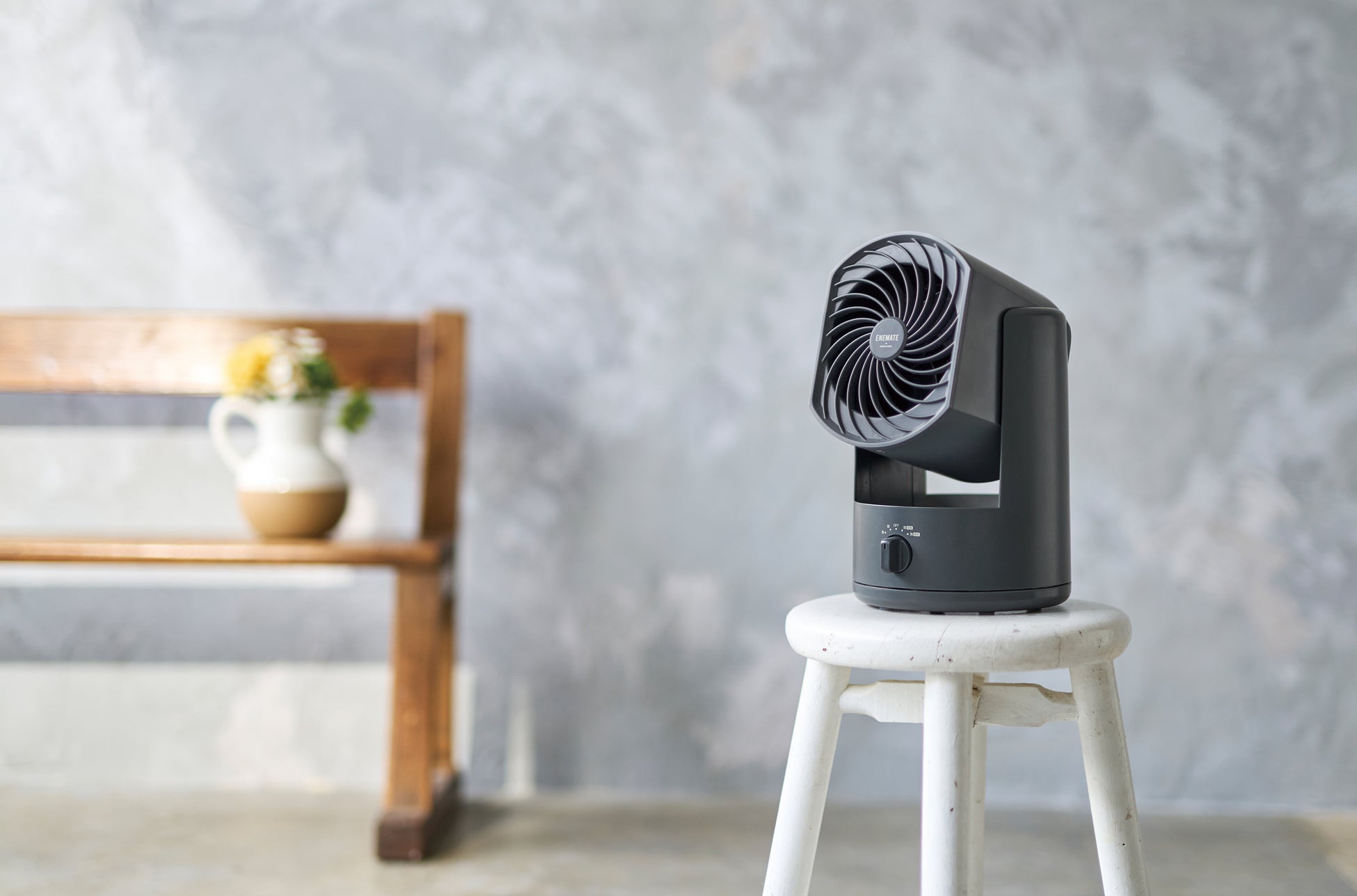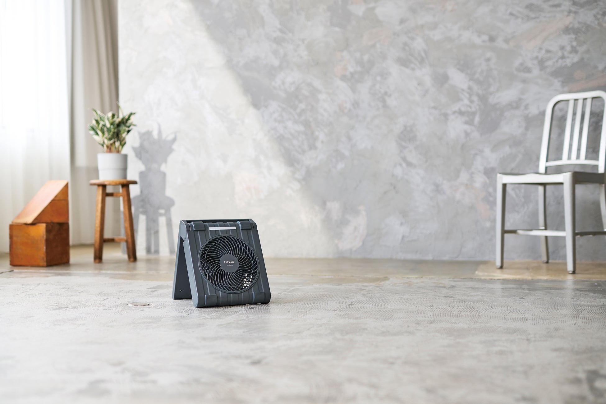 充電式フォールディングサーキュレーターは、バッテリーを搭載したコンパクトなサーキュレーターです。ヘッドをくるんと回転させ、コンパクトに収納できます。