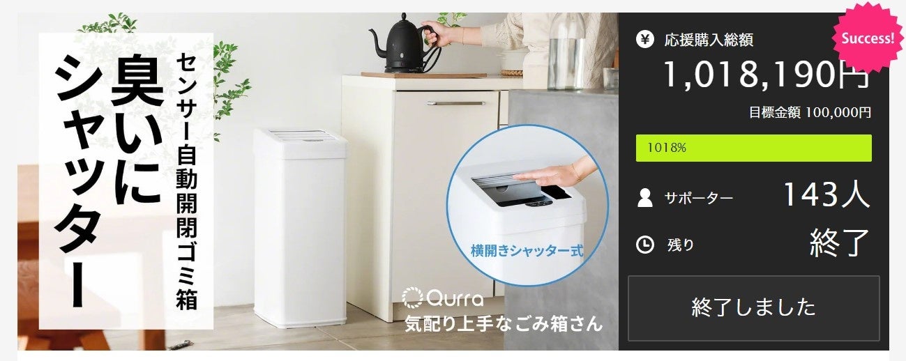 また、2022年12月2日~2023年1月30日まで先行販売した「Makuake(マクアケ)」では、目標金額1018%を達成いたしました。
