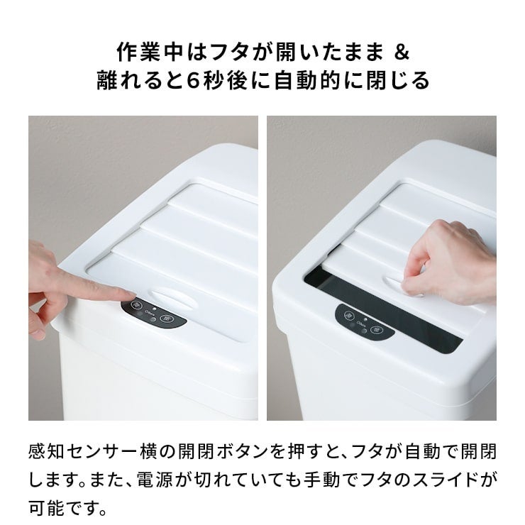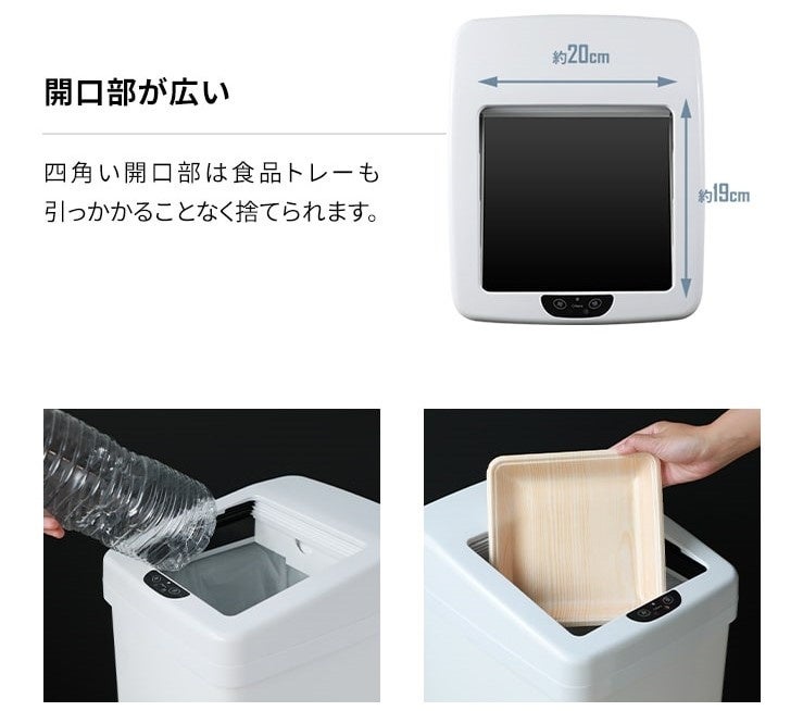 ・感知センサーでフタが自動開閉するので、手を触れずにゴミを捨てられる