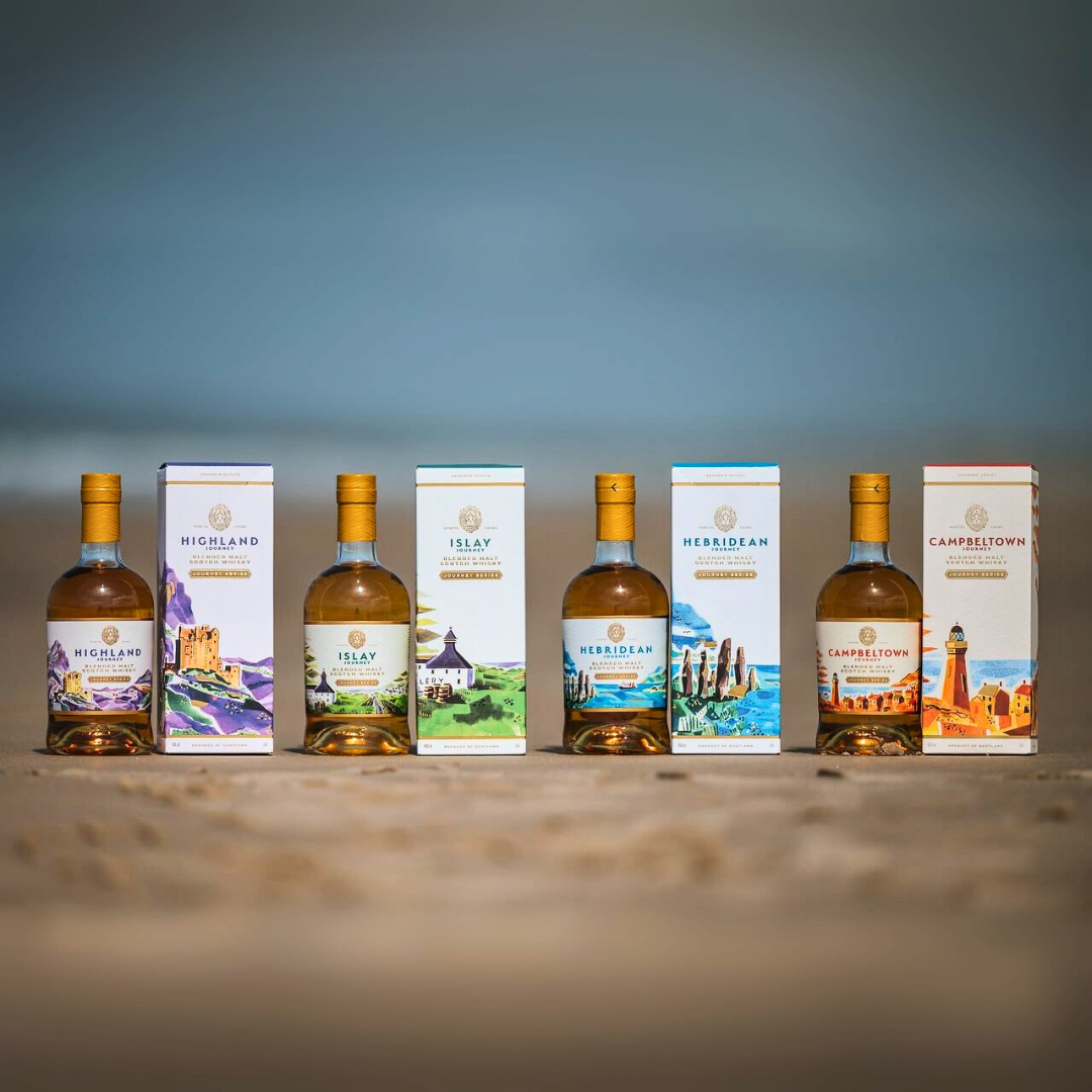 ブレンダーとしての手腕を遺憾なく発揮する「ジャーニーシリーズ」は、地域の個性を旅するように味わえるラインアップとして人気が拡大。大人気ブレンデッドモルト「アイラ・ジャーニー」はアードベッグ、ラガヴーリン、ラフロイグ、ブナハーブン、カリラといったアイラ島を代表する蒸留所のモルトをブレンド。手頃な価格帯ながらも本格的な味わいで、同社のブレンディング技術を余すところなく体現したアイテムとして、世界中のウイスキーファンに愛されています。