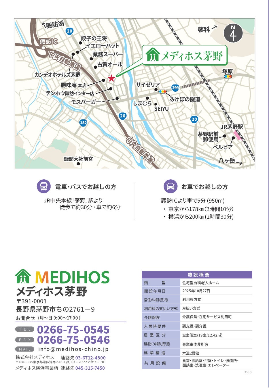 ◆ 名 称: 住宅型有料老人ホーム(医療支援型住宅)「メディホス茅野」(全19室・住宅型有料老人ホーム)
