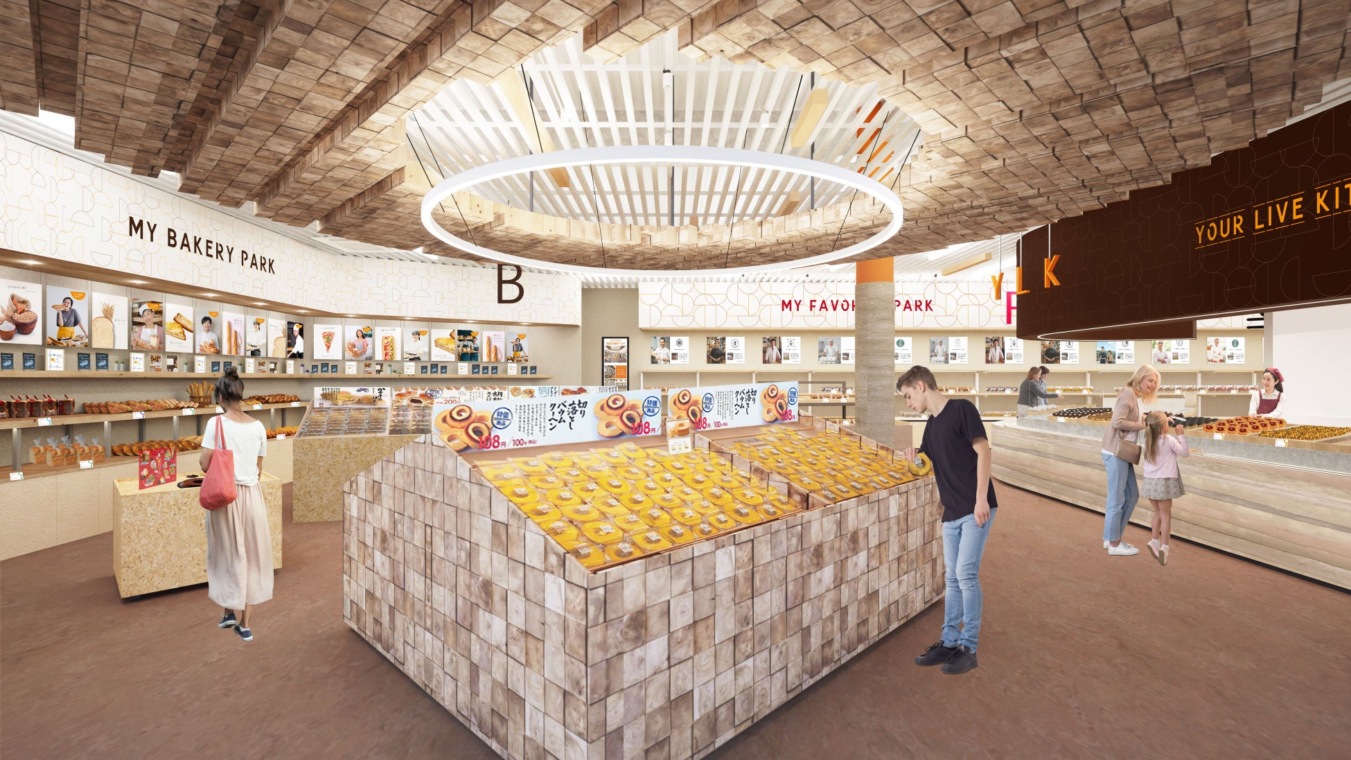 私たちは、食品メーカーとして商品開発から流通・販売までを一貫して行っている強みを活かし、工場直売価格の商品や「アウトレット商品」の取り扱いに加えて、既存商品に新たな価値を加えて再生する「アップサイクル商品」を販売し、地域の循環型社会の実現に寄与することを目指します。また、90年以上培ってきた「ものづくり」の技術を活かし、焼き立てのパンやスイーツを「ライブキッチン」で提供します。さらに、自社物流網を活かし、地域のベーカリーや菓子店、農家さんから美味しいものを集め、地域の食の魅力を発信することで、地産地消に貢献したいと考えております。