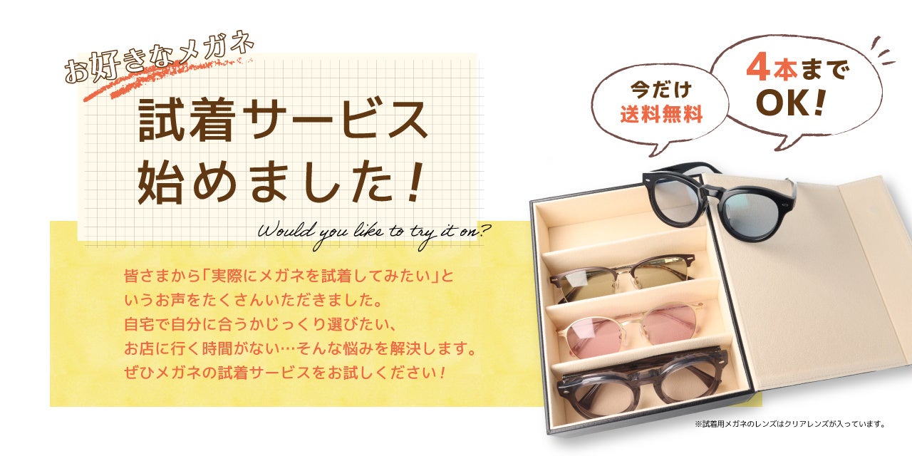 今だけ!期間限定で手数料・送料無料!自宅で気軽にメガネ選びができる「メガネプラス」の試着サービス開始