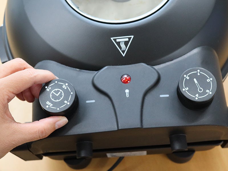 本体サイズは幅365×高さ185×奥行330mm。本体のセラミックのピザストーンにピザをセットし、温度ダイヤルとタイマーをセットすればOK。温度は5段階で80度(+-20度)~400度(+-20)まで設定が可能。タイマーは15分まで設定可能。ピザは最大直径30cmまでに対応。冷凍ビザなら約5分、生のピザの場合は約5~10分程度で美味しいピザが焼きあがります。