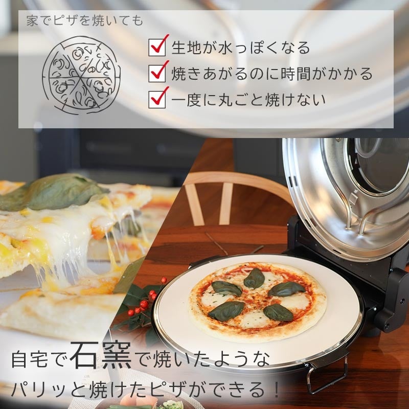 本製品は家庭でピザが美味しく手軽に焼けるピザ専用オーブンです。