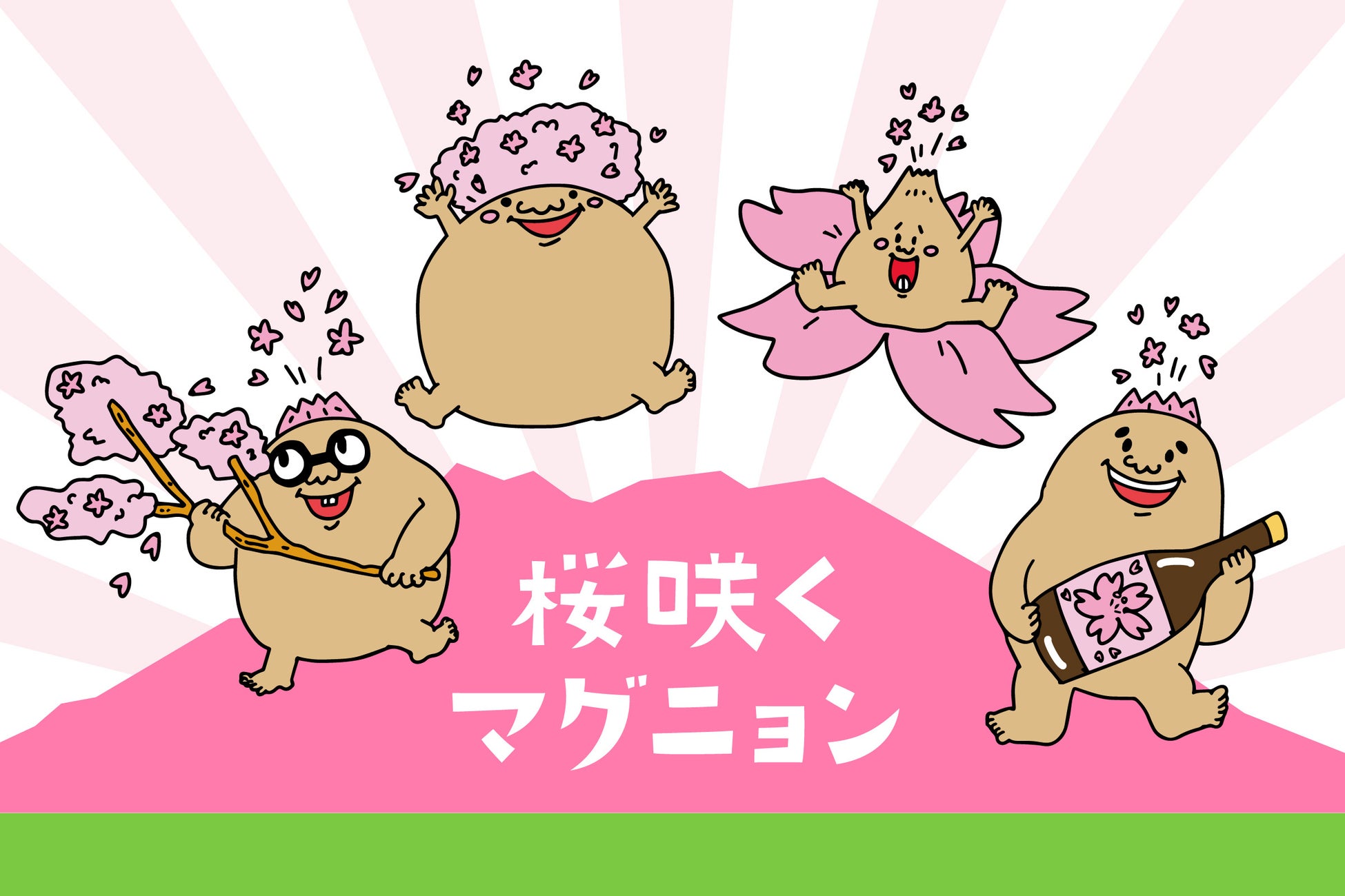 鹿児島市のPRキャラクターである「マグニョン」が、お花見バージョンになって登場!各種ツールに登場したり、「桜メニュー」を購入するとチャレンジできるガチャで、「桜咲くマグニョン」のオリジナルステッカーや、各店舗で使えるお得なクーポンが当たります。