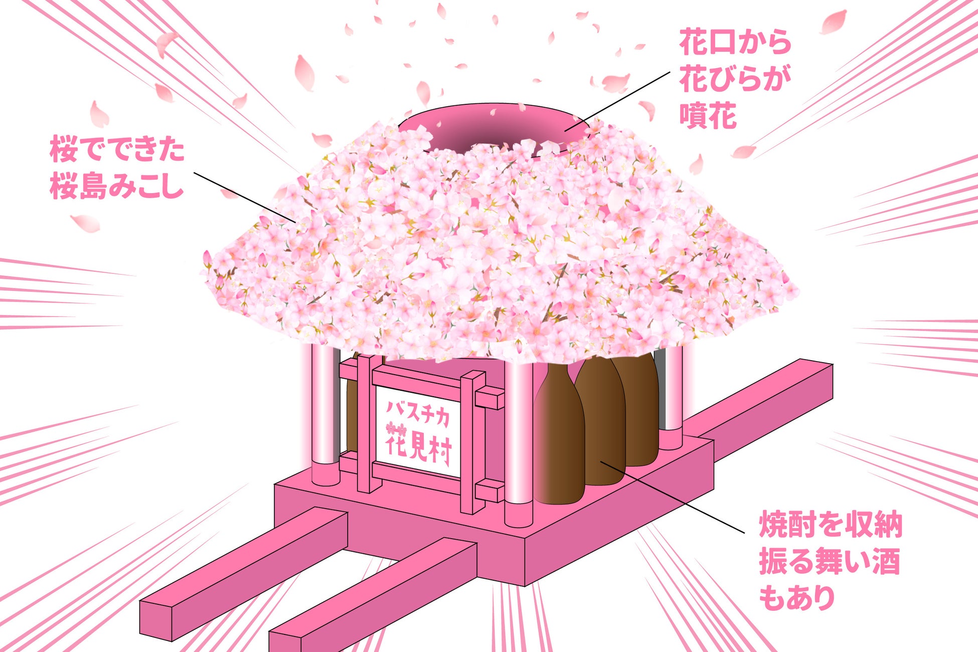 「バスチカ花見村」オリジナル!桜でできた「桜島みこし」が登場