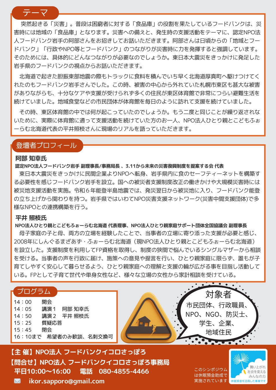 「災害 」にどう備え、どう動く?|公開シンポジウム「災害時のフードバンクの備えと支援活動」を開催します