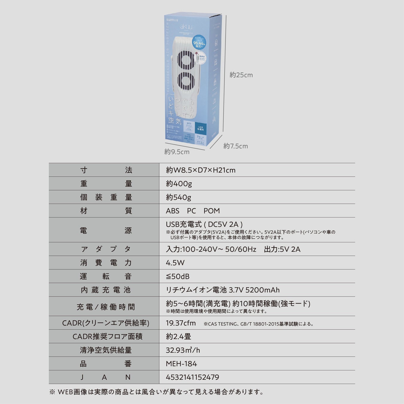 車内や旅行先、デスクなどで使える充電式の空気清浄機。いつでもどこでもキレイな空気。
