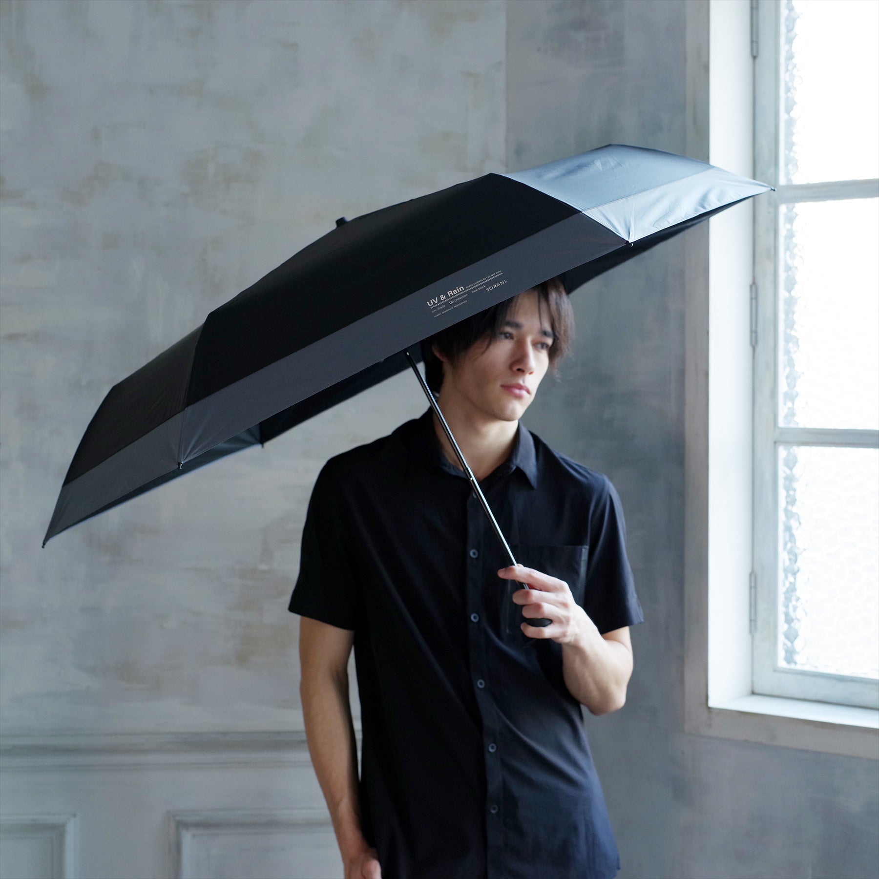 毎年完売のユニセックス遮光日傘シリーズを、デザインやカラーのバリエーションを増やし新たに「SORANI.(ソラニ)」として展開。遮光率・紫外線遮光率100%、遮熱効果もある一級遮光生地を使用し、軽さやサイズ感にこだわった機能性の高い晴雨兼用折りたたみ日傘のシリーズです。撥水効果、耐水圧20,000mm以上あるので雨傘としても活躍します。