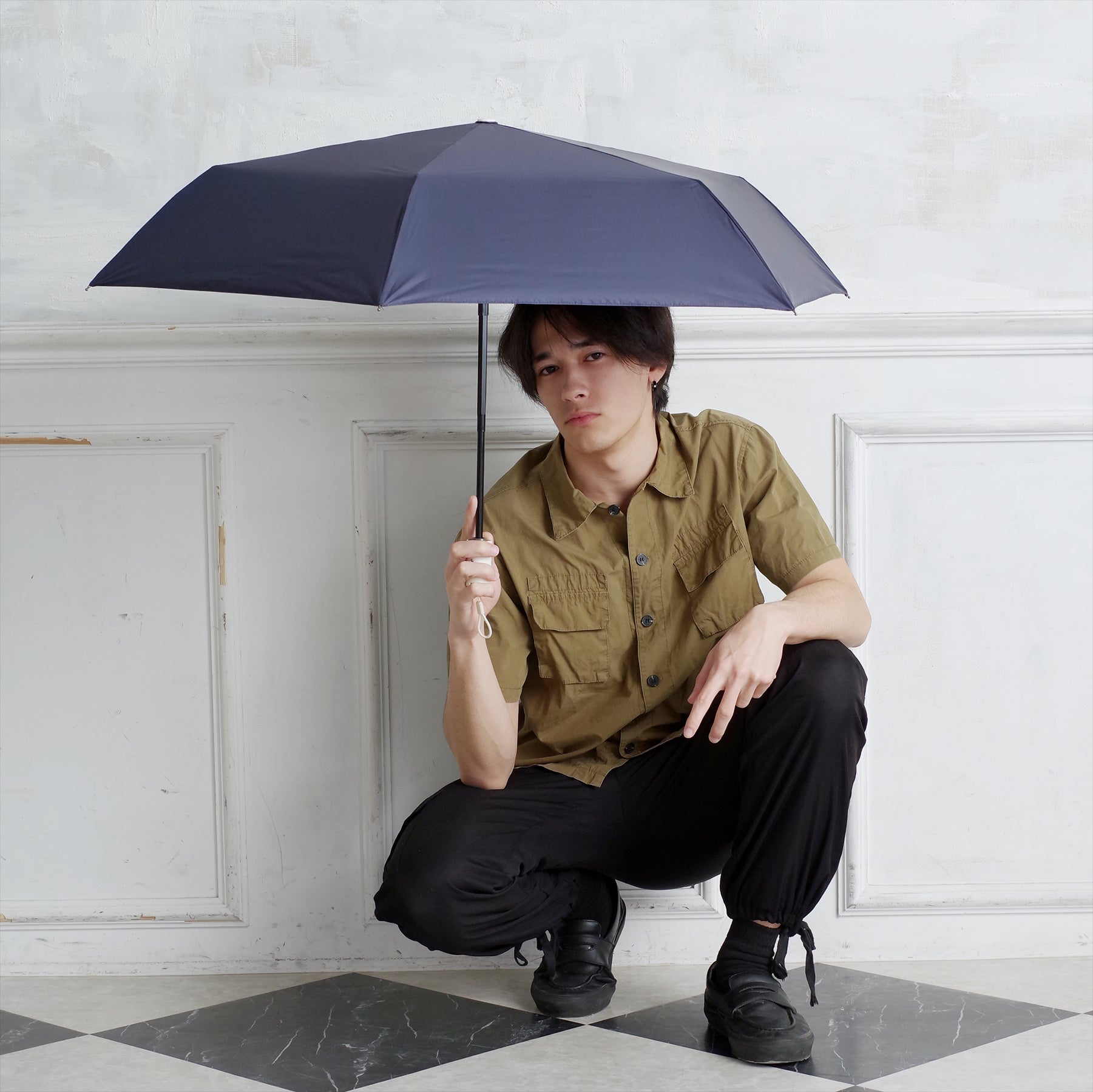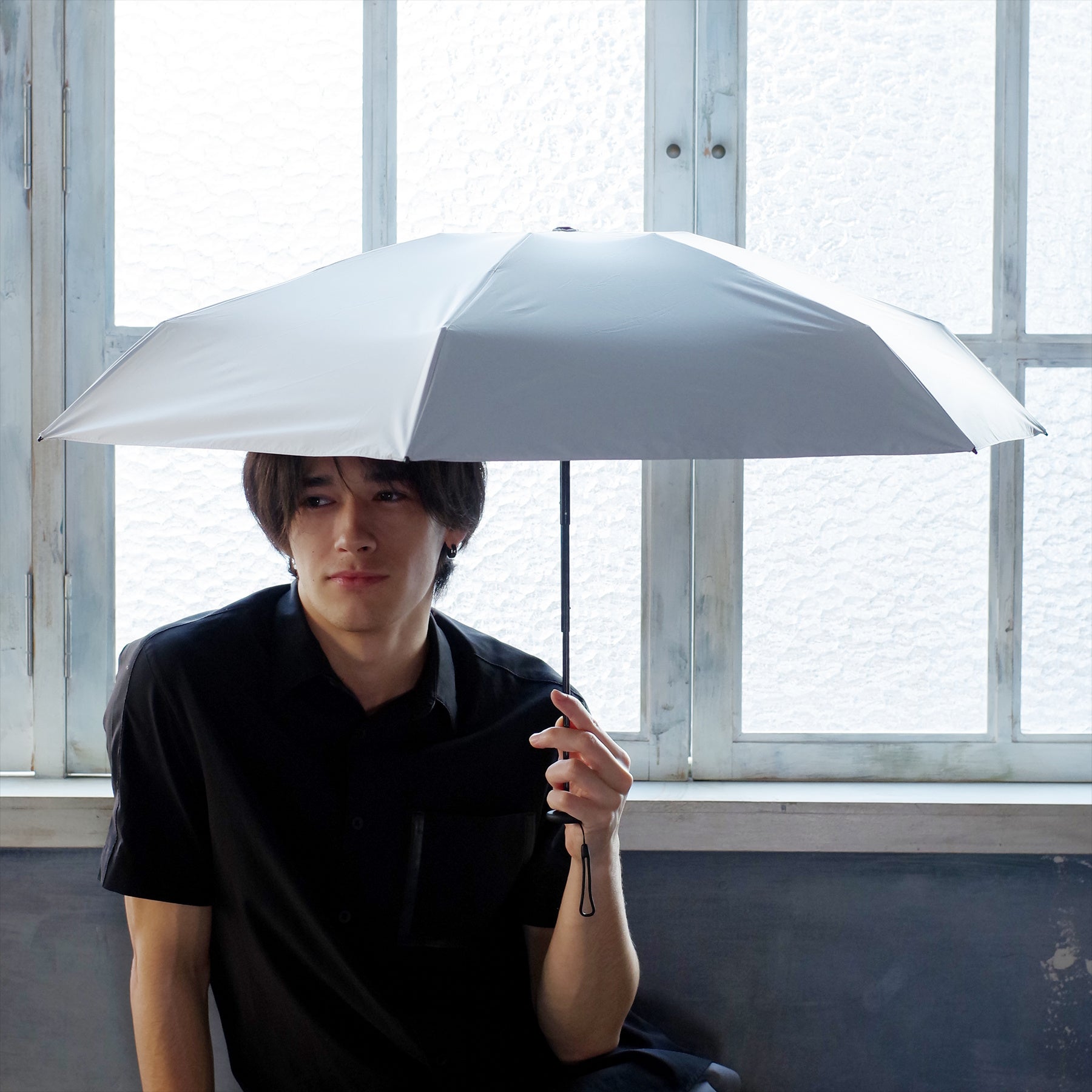 遮光率100%、紫外線遮蔽率100%、遮熱性、はっ水性、耐水圧20,000mm以上を兼ね備えた高機能素材を使用し、性別や年代にとらわれない誰もが使いやすいと感じる機能を追求しています。装飾性を抑えたシンプルなデザインは、飽きずに長く使え、家族や仲間でシェアし合えます。