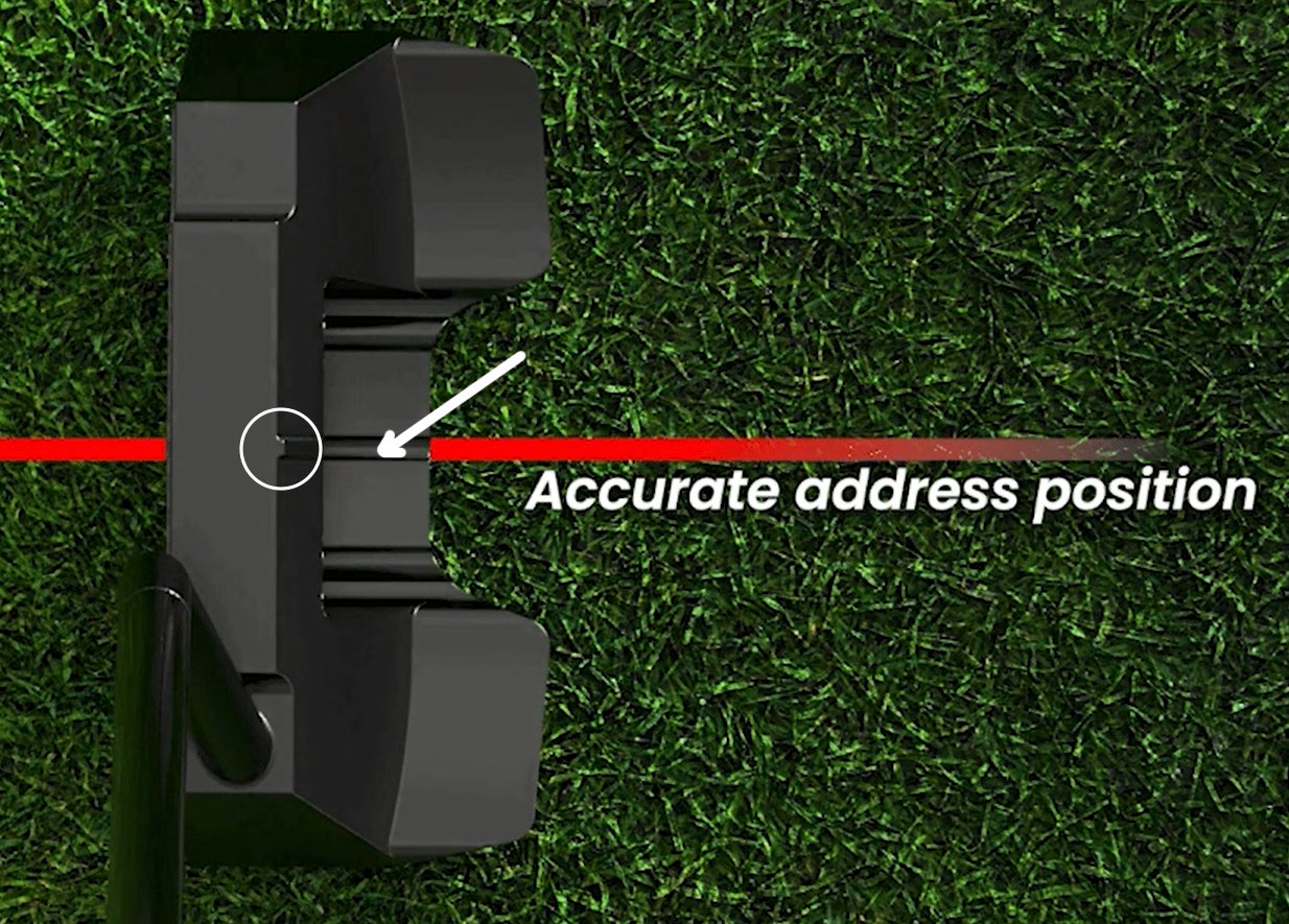 正しいスタンスとアドレスが自然にとれるようにヘッド上部に2つの照準ラインを設置しました。