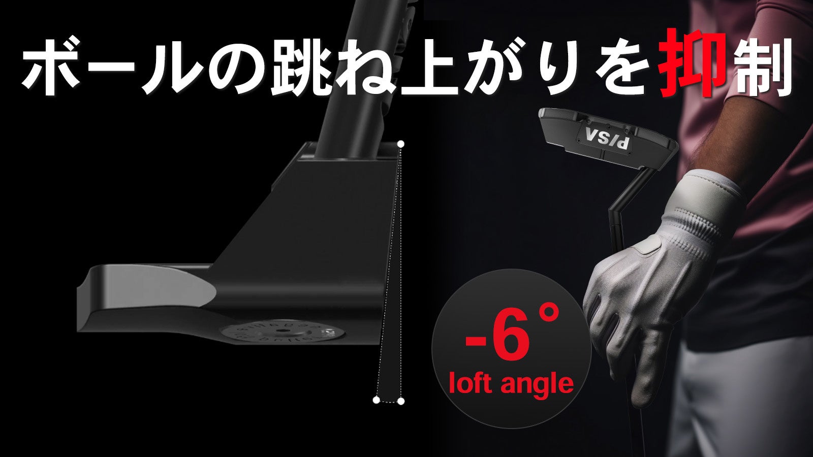 マイナスロフトを採用し、打った瞬間のボールの跳ね上がりを抑制し、さらにフェイス面が可動し、ボールが素直に転がる力を邪魔しない構造をとりました。
