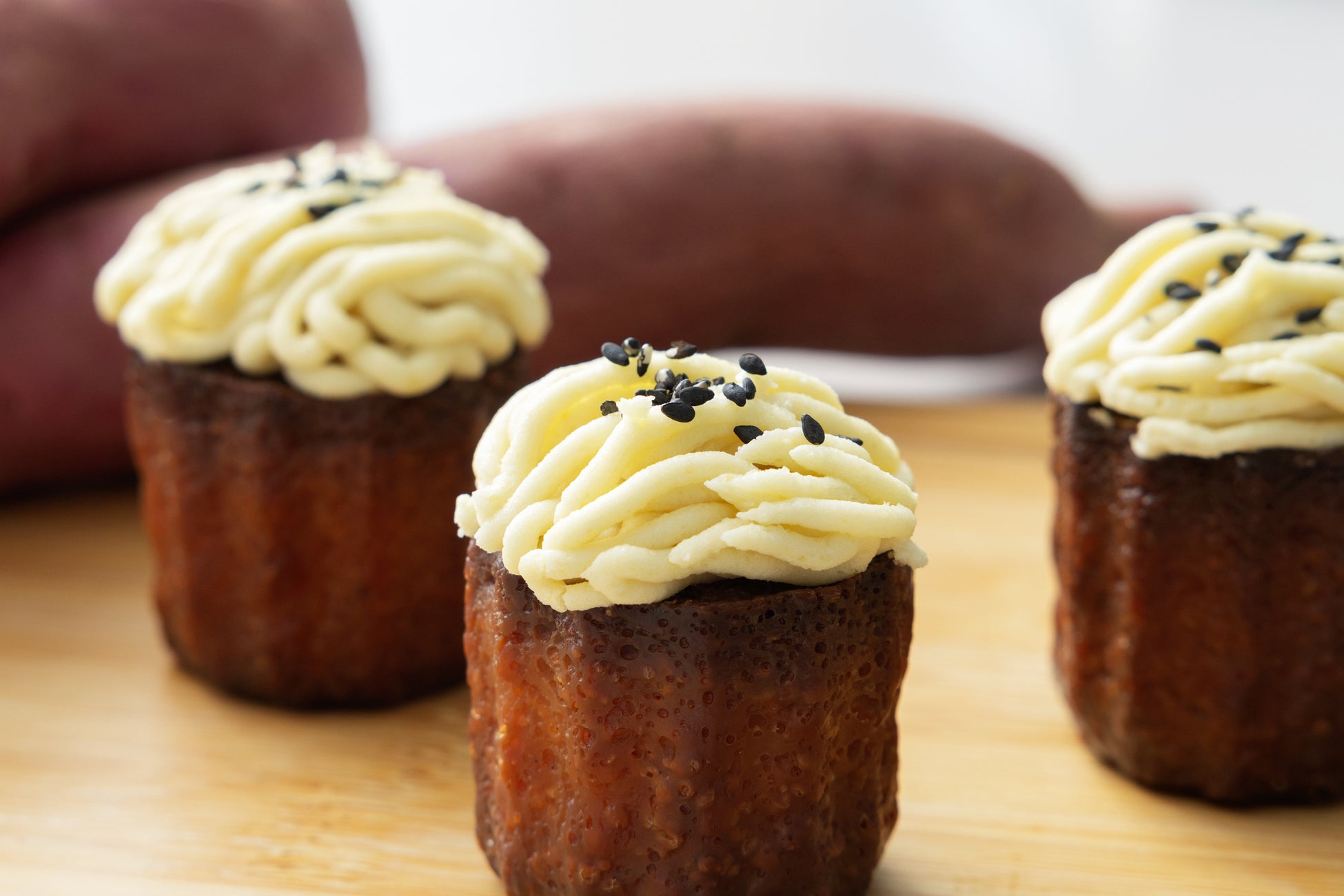 さつまいもクリームをたっぷりトッピング! 「なると金時」を使用した上品な甘さの「お芋カヌレ」が広島発カヌレ専門店「立町カヌレ」から季節限定販売中