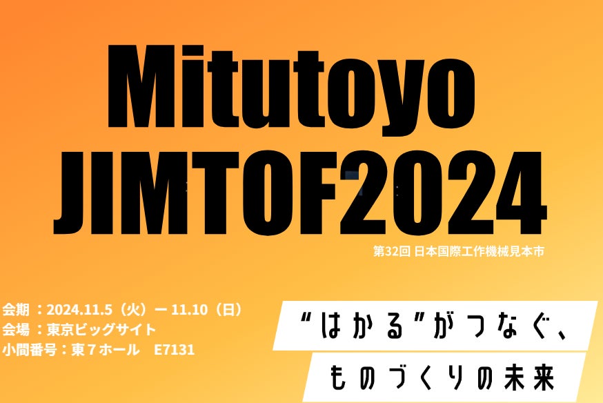 株式会社ミツトヨ(代表取締役社長:沼田恵明)は、2024年11月5日(火)から11月10日(日)まで、東京ビッグサイトにて開催される展示会「JIMTOF2024」に出展し測定機のソリューションなどを紹介します。