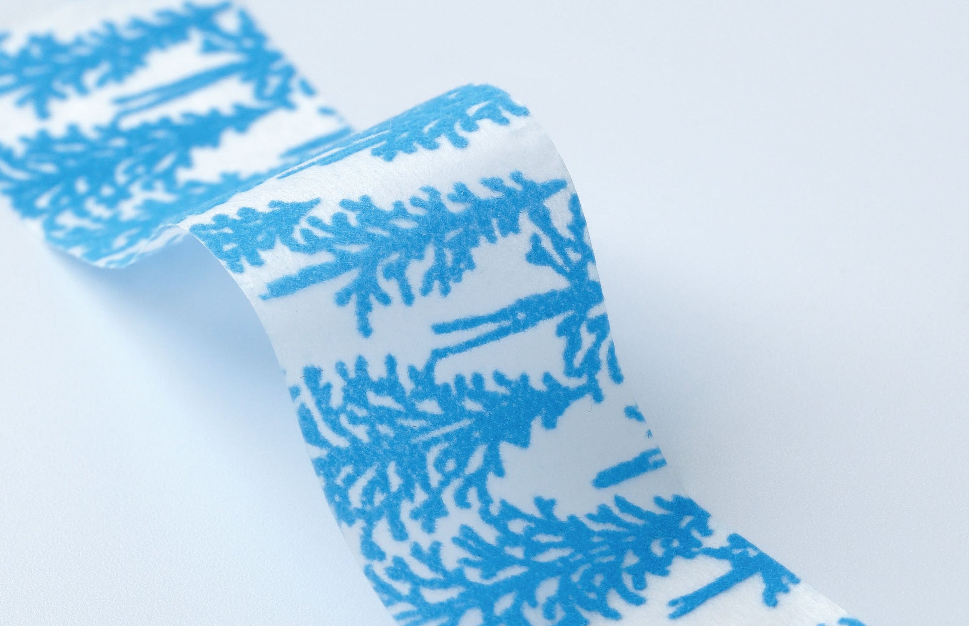 通常のデコレーションテープに加え、暗闇で光る蓄光加工を施したマスキングテープや、艶やかな光沢が美しい高輝度テープ、ふわふわの繊維感が新しいフロッキー加工など、mtの培った加工技術とテキスタイルブランドならではのデザインを掛け合わせたマスキングテープが生まれました。