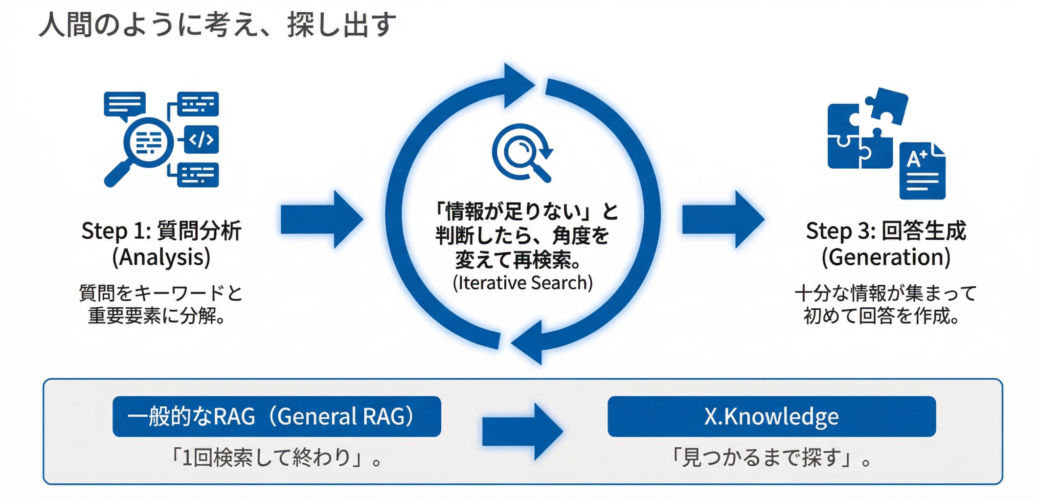 曖昧な質問を分解し、最適な情報を探索する検索ループ機構