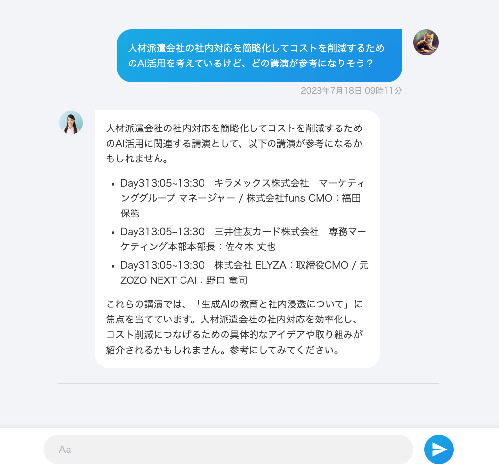 1日目(7月18日)14:30~14:40 会場案内チャットボットの使い方