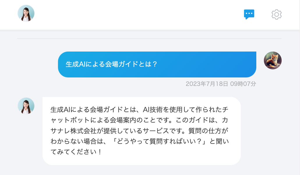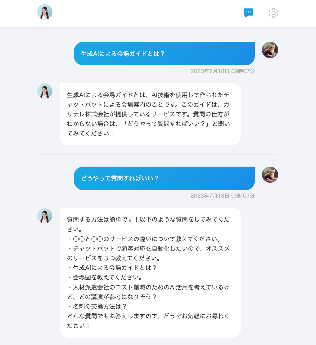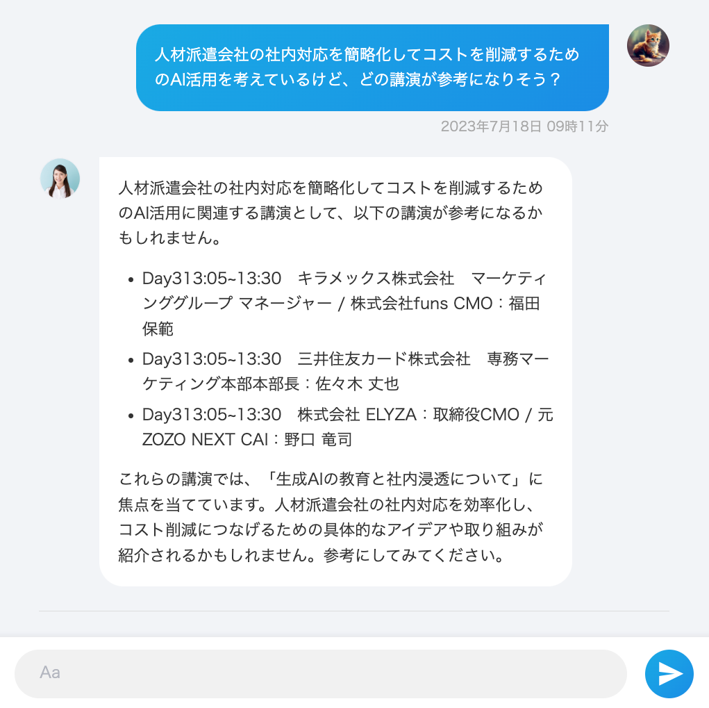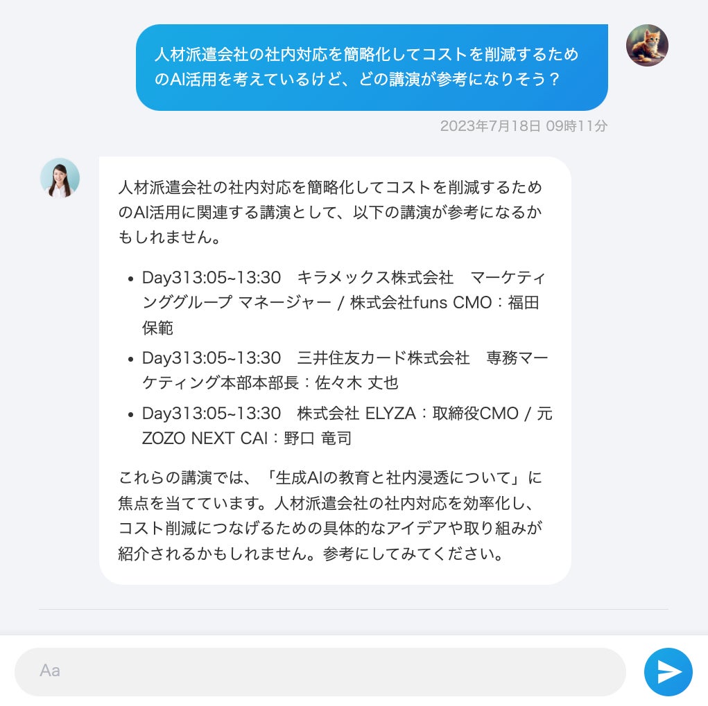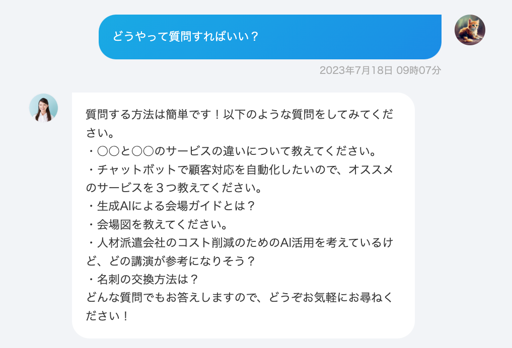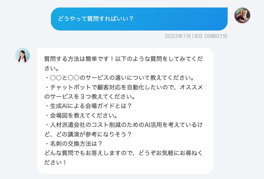 会場内では、「ChatGPT」のデモンストレーションとして、実際に「生成AIによる会場ガイド」をご体験いただけます。