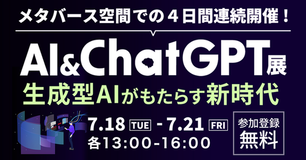 メタバース空間を使用したオンライン展示会「AI & ChatGPT展」にて、公式会場案内チャットボットの提供及びイベント参加のお知らせ