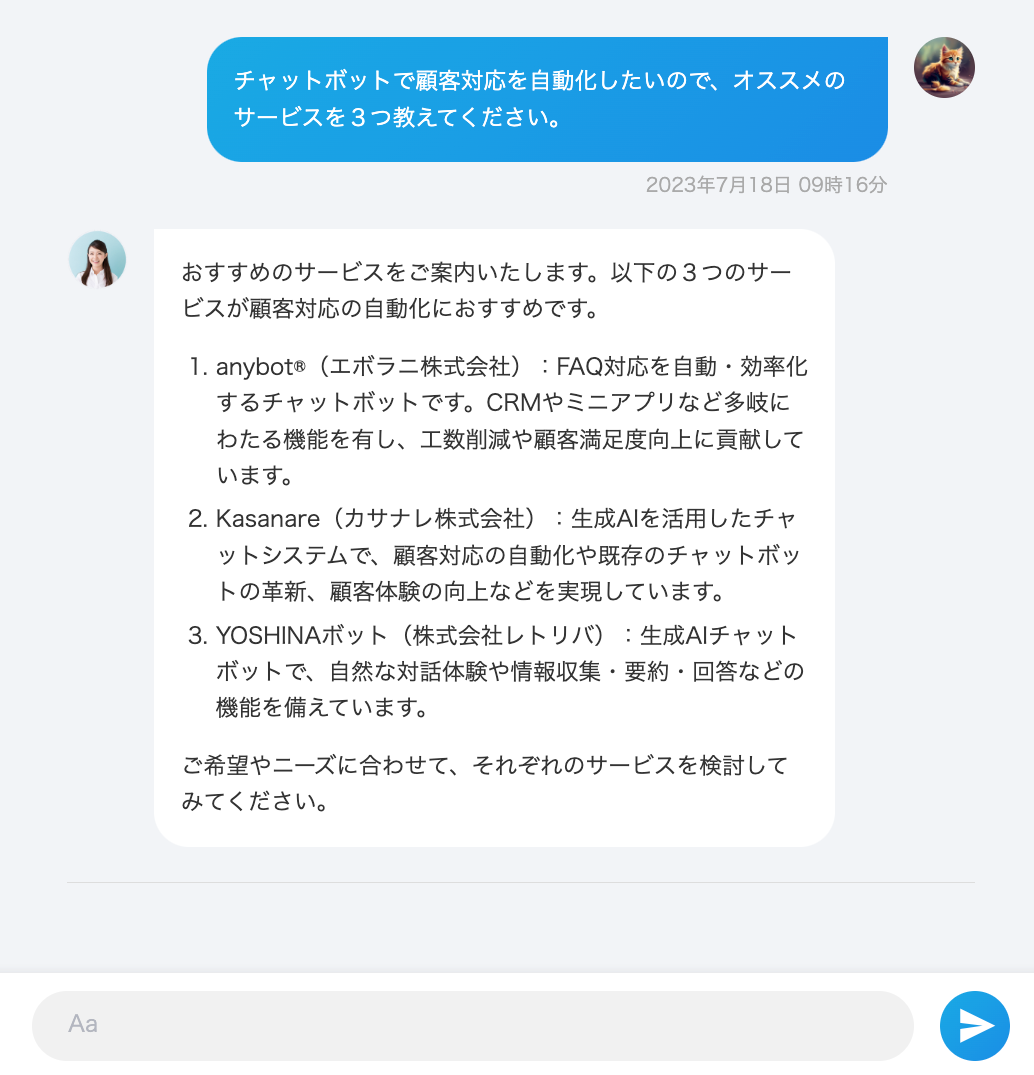 「Kasanare」は、ChatGPT等生成AIの大規模言語モデル(LLM:Large Language Models)により開発されたGenerative AIチャットシステムです。