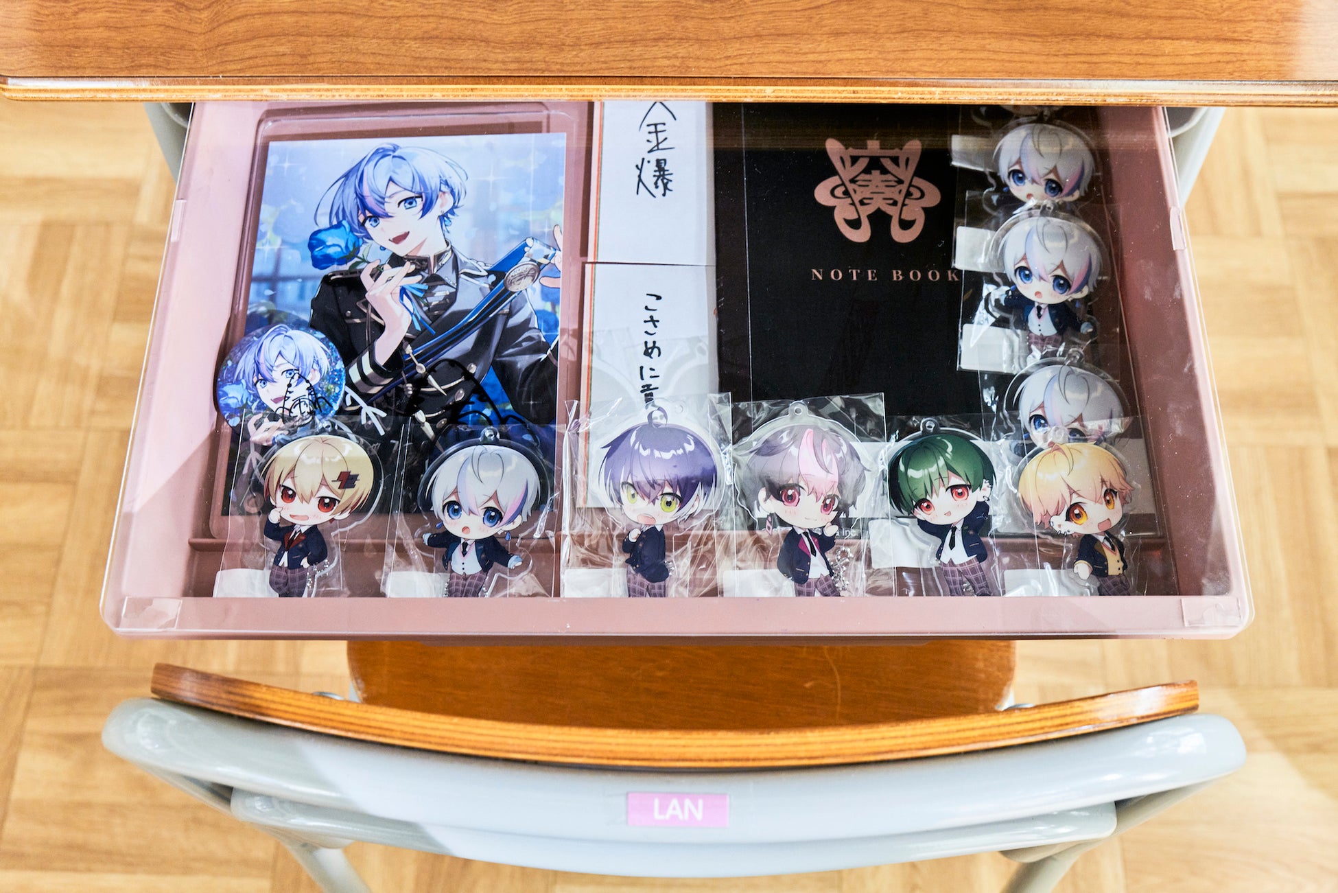 そして、メンバーの机の中には、それぞれが思い思いに入れた私物やこのために用意した展示物が入っています。推しの机には何が入っているのか・・・席に座って実際に開けてみてください!