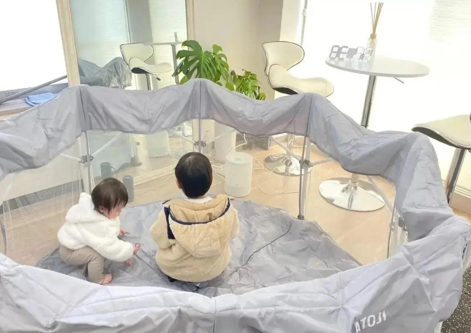 レビナでは全店ベビーサークルを用意しています。お子様が目の届く範囲におりますので、ご自身のトレーニングに集中して取り組めます。