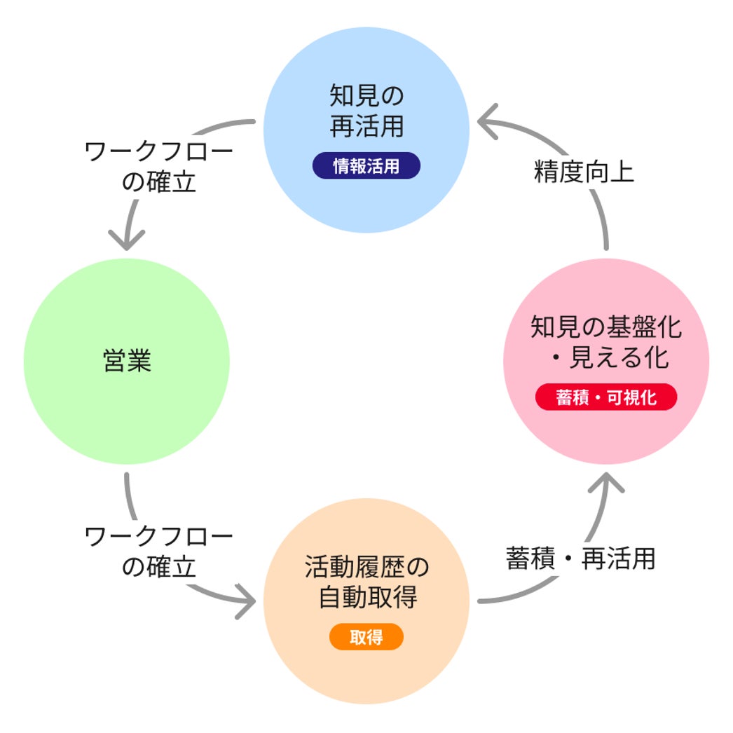 日々の営業活動においては、過去のアプローチや、その商談結果などの知見をもとに各個人が商談を進め、更なる提案を作成しています。この知見の原資となるのが日々の活動そのものであり、それが書き残された議事録は重要な財産となります。