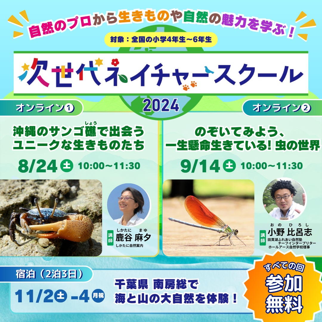 好奇心を育み、地球の未来を考えるきっかけを子どもたちへ。自然のプロから生きものや自然の魅力を学ぶ「次世代ネイチャースクール2024」オンラインと宿泊型で開催
