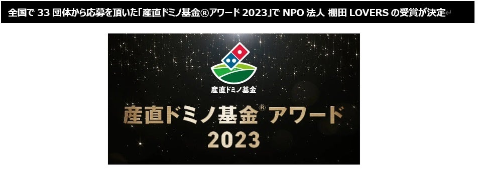 NPO法人棚田LOVERS(本社:兵庫県神崎郡市川町、理事長:永菅千鶴子)は、産直ドミノ基金®アワードを主宰されている株式会社ドミノ・ピザ ジャパンと共同で、6 月24 日(月)10 時~13 時まで兵庫県神崎郡市川町の棚田、民宿:古民家「しろめて」にて「産直ドミノ基金®アワード 2023 授賞式、交流会~棚田LOVERS17 周年、古民家しろめて4 周年記念企画」を開催いたします。