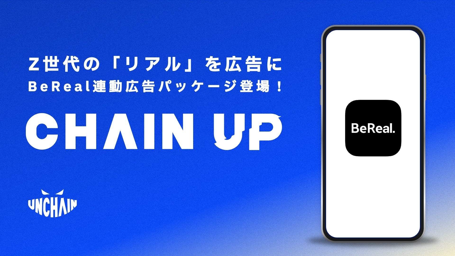 株式会社UNCHAIN(本社:東京都渋谷区、代表取締役:ウィン・レイ、以下UNCHAIN)は、BeReal Japanのコンテンツパートナー協業パッケージ「BeUP!」を活用したBeReal.広告パッケージ「CHAIN UP」の販売を開始しました。