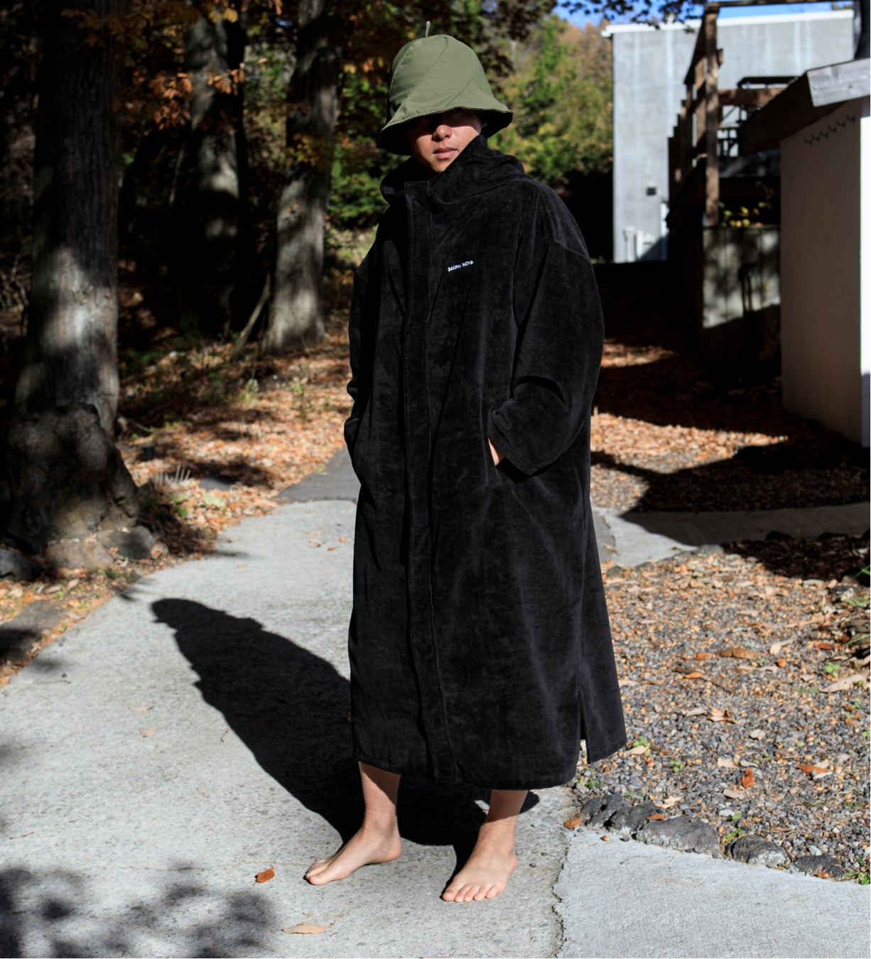 サウナポンチョは”被る”から”羽織る”へをコンセプトに、既存の枠を超えた新ジャンル「サウナコート」を発売。長袖、襟付き、前開きといった寒い冬でも快適に整い時間を過ごせる仕様にアップグレード。