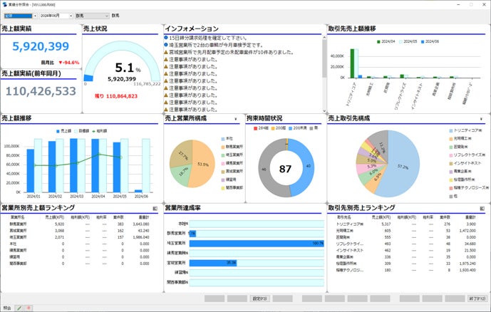 このような状況下では、経験や勘に依存した配車・収支管理から脱却し、実績データに基づく経営判断がますます重要になっています。当社のロジスティクス事業部は、運送業界に特化したシステムベンダーとして、従来版システムの導入実績を通じて蓄積した膨大な運行・収支データと、現場との継続的な連携から得られる業界ノウハウを基盤に、配車・労務・収支情報を統合的に可視化することで、データドリブンな経営を支援する次世代システムの新バージョンを開発しました。
