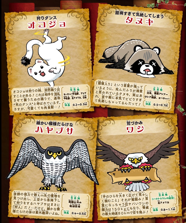 カードの背景は動物の主なすみかを表しており、動物のイラストはその動物の面白い生態=”クセつよポイント”が描かれています。「勉タメジャンプ 2024 WINTER」の動物園特集を合わせて読めば、動物の生態を楽しく学べます。