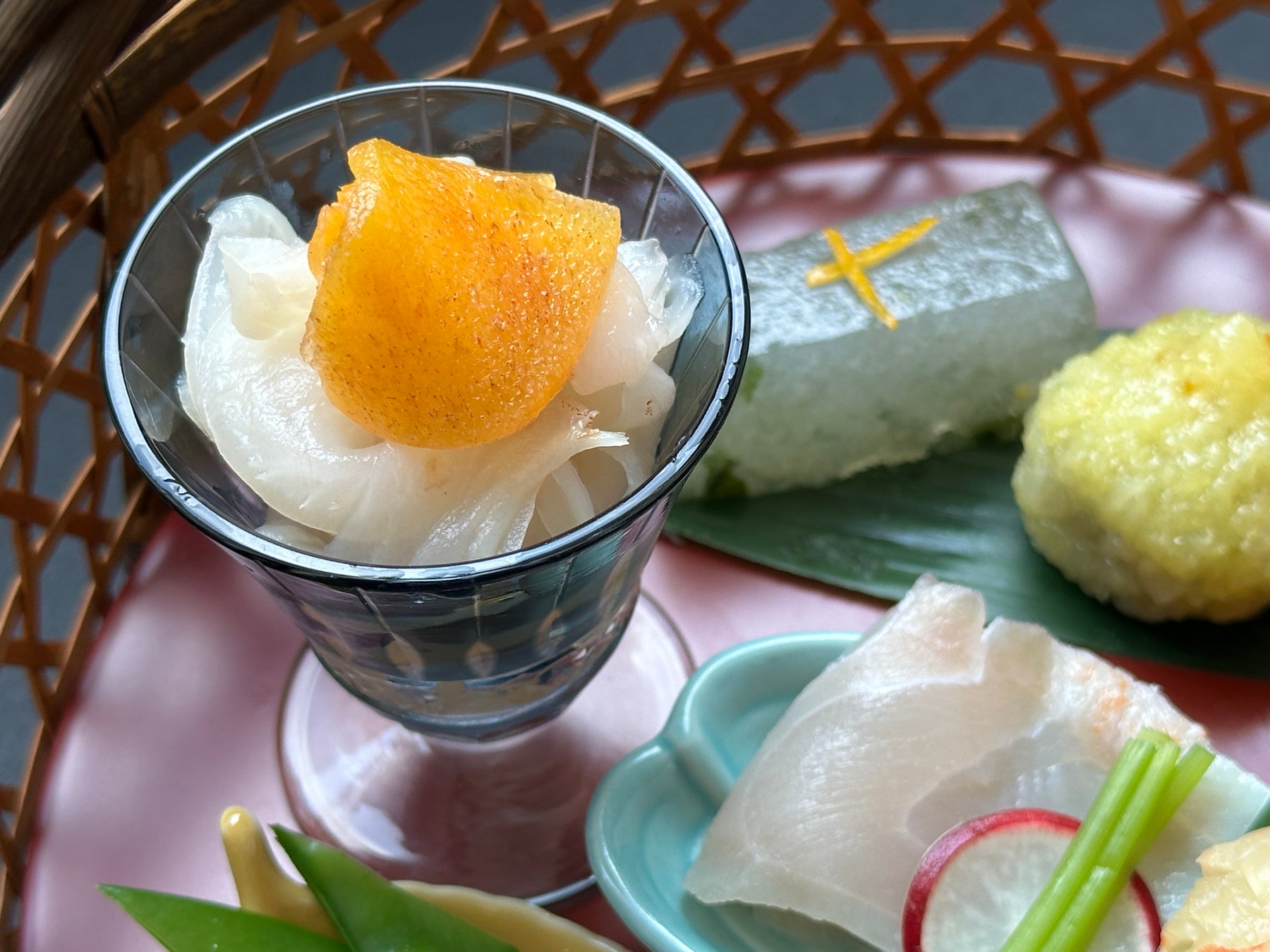 「岐阜県産富有柿と蕪の甘酢漬け」は、岐阜県産の富有柿と国産の蕪を使用し、酸味を抑えたまろやかで食べやすい甘酢漬けに仕上げました。柿の自然な甘さと蕪のさっぱりとした食感が絶妙に調和し、口当たりの良い一品となっています。