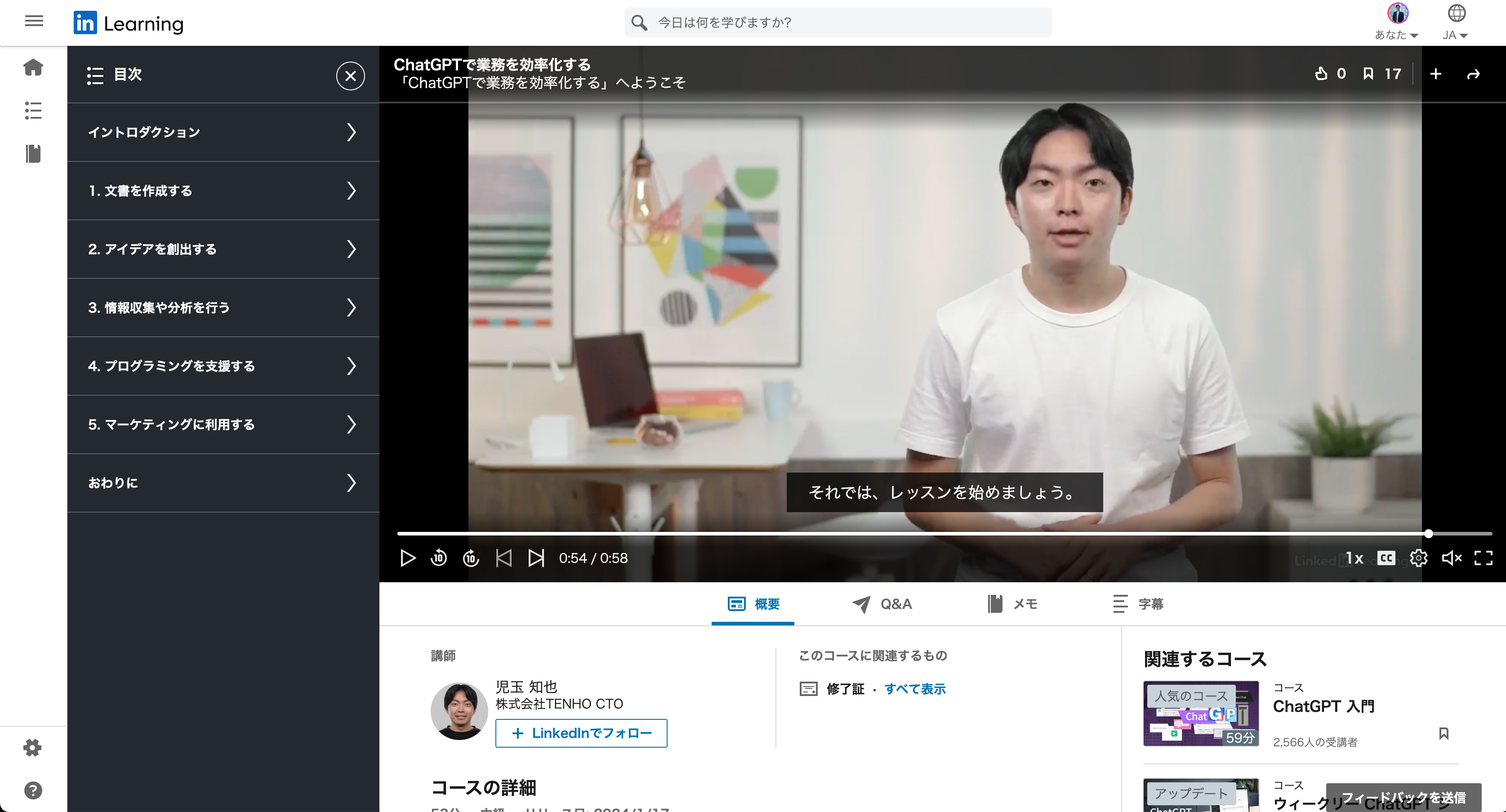 LinkedInラーニングにて「ChatGPTで業務を効率化する」コースをリリース