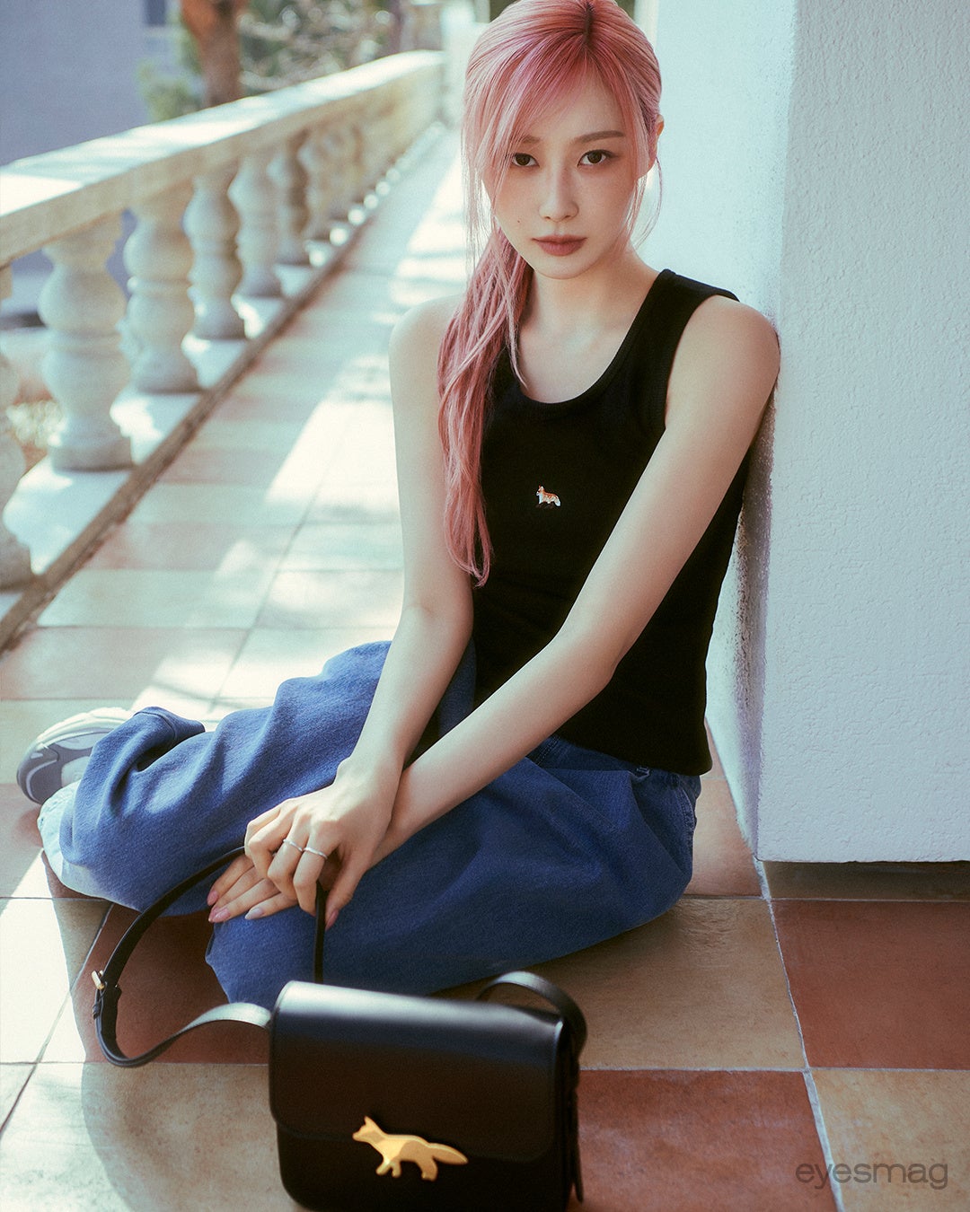 「Summer in Seoul」をテーマにした今回の撮影では、GISELLEのヘアカラーともマッチした淡いピンクのアイテムを中心に、春夏コレクションの新作を愛らしくもエレガントな雰囲気でスタイリングしています。